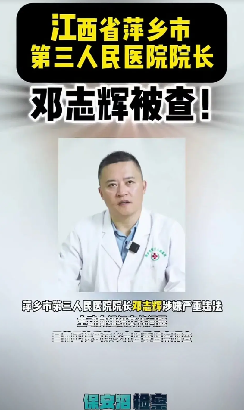 江西萍乡第三人民医院原院长邓志辉: 1、作为院长,别人给他送礼,他接了。之后,他又给管医院的相关人员送礼,并且还请这些人吃豪华大餐。这一切都是为了升职加薪,为此他还不顾医院实际情况,搞了很多政绩工程,完全不在乎医院职工的利益。 2、作为院长,领着国家发的工资,还在外开公司做生意,赚了很多钱。他还不满足,在医院大型设备购买、工程项目承揽方面给予他人方便,并且获得巨额回报。 3、作为医生,仍然看不透所谓的“美色”,大搞权色交易和钱色交易。 4、坑害国家利益,套取医基金。