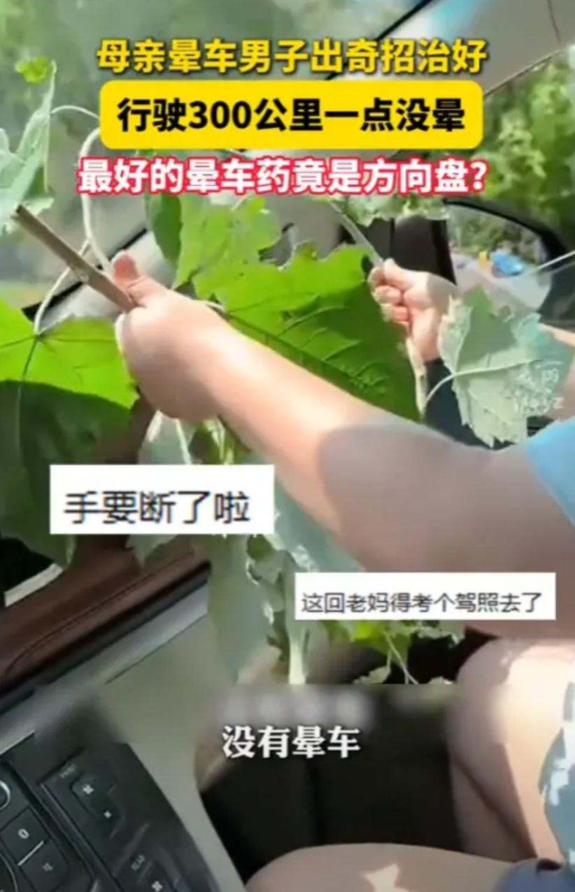 “人怎么能这么聪明!”8月10日,浙江,一男子的母亲晕车严重,为了让母亲舒服,男子找了一个树枝做方向盘,让母亲拿着,不料,竟非常有效,开了300公里,一点没有晕,网友:最好的晕车药竟然是方向盘!
