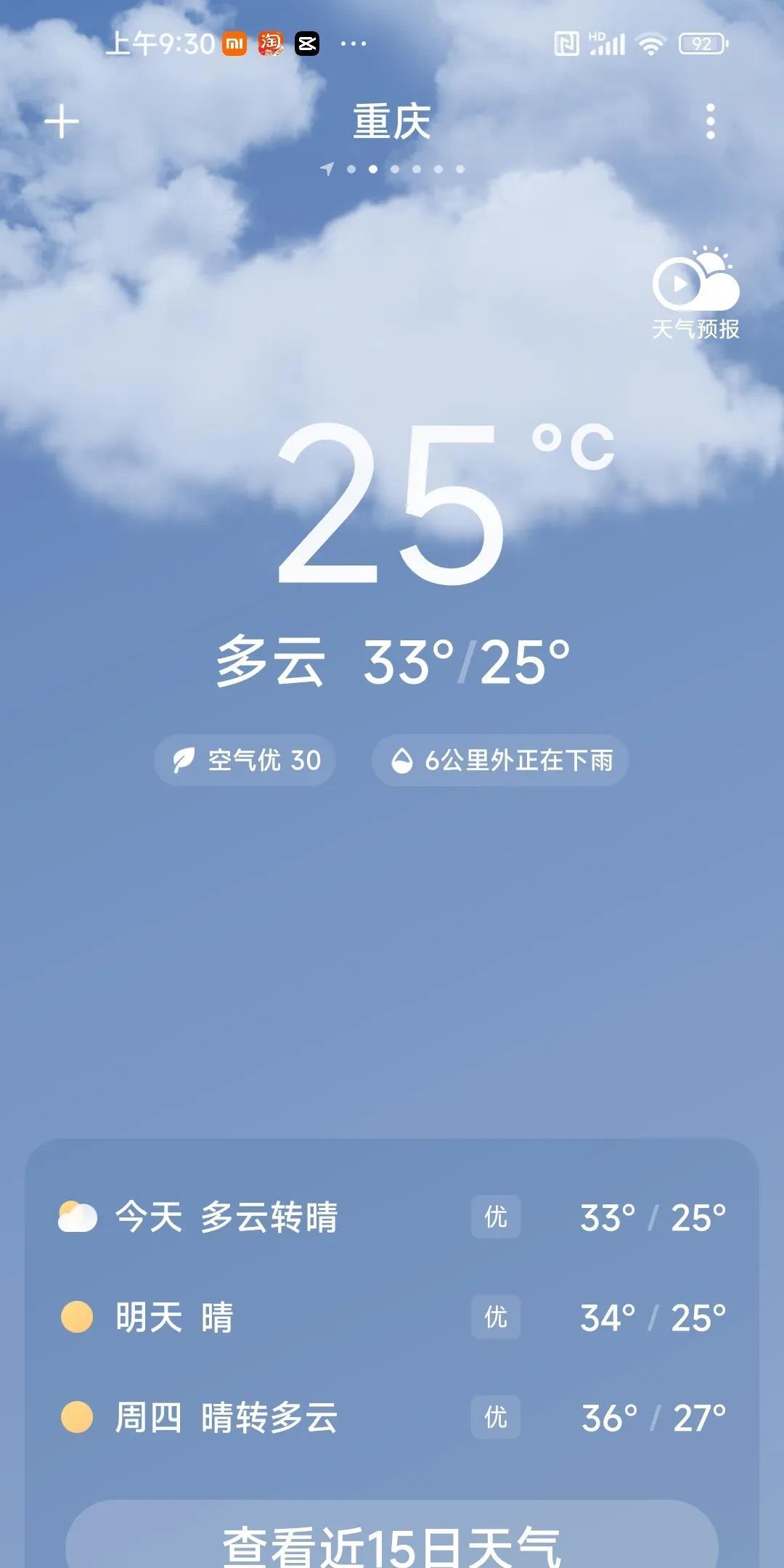 桐梓今天22到30度,依然比较凉爽惬意呢。重庆25到33度比之前高了三度左右,为