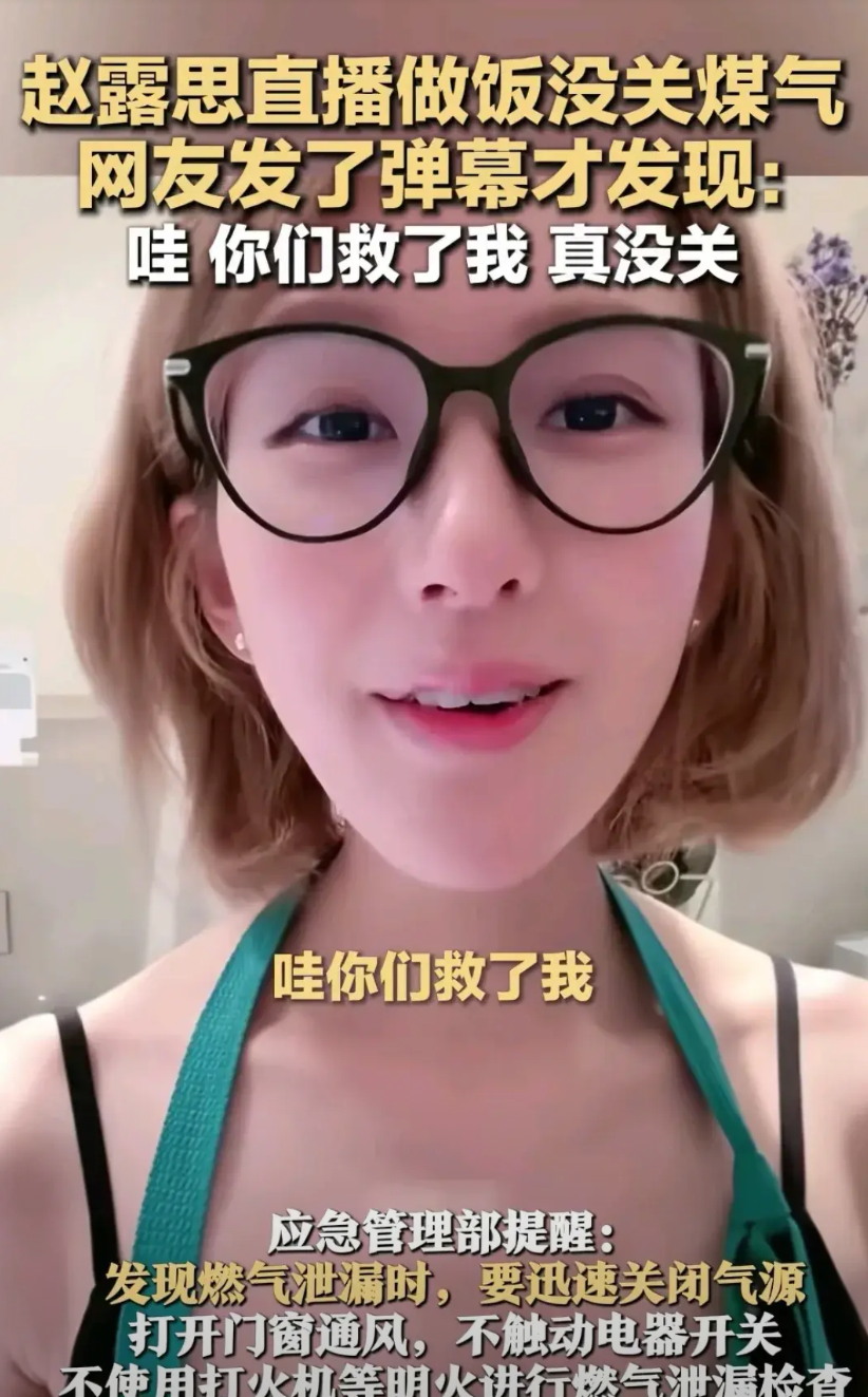 赵露思感谢了直播间的网友,她确实忘记关煤气了,赵露思谢谢大家救了她。