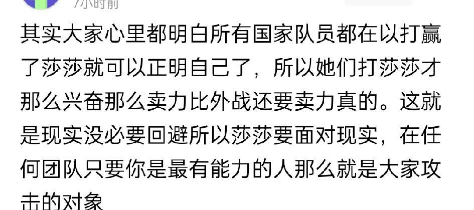 事实也确实是这样,但是家人们,国乒就是一个团体,都要有责任感,世界第一也不好当,全世界都看着呢?她压力也大,所以希望女队团结起来,不要搞分裂。