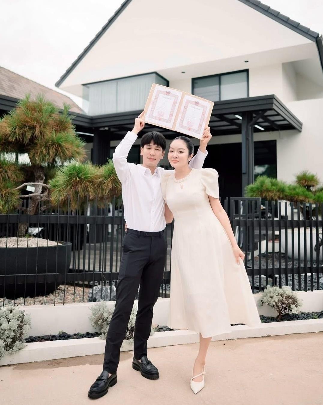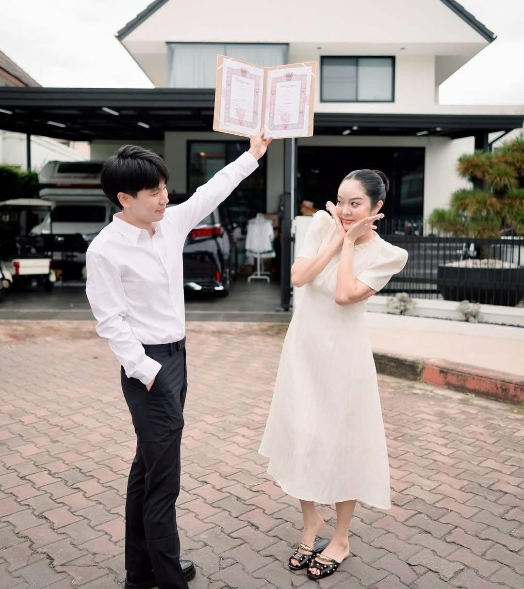 #泰国娱乐# 结婚一周年后,Kambum与富豪之子Peace领证了。。圈内又多了一对领证的明星夫妇。。