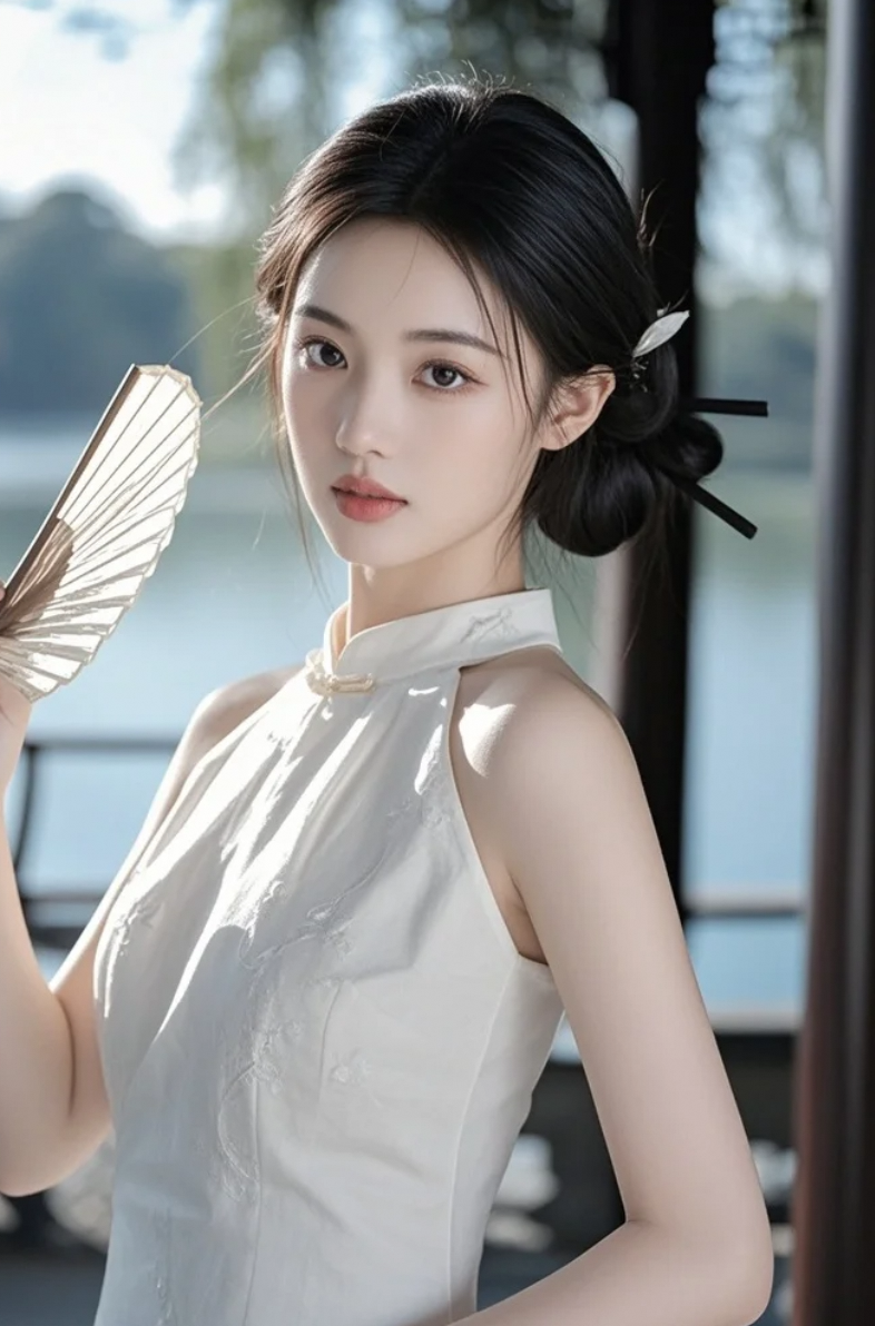 她站在湖边,像在等风,也在等你