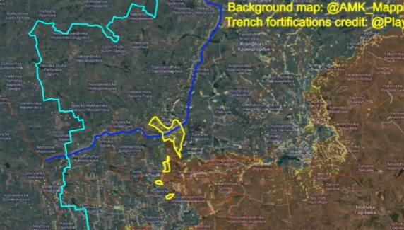 俄军攻到新沃达诺耶,打穿了乌军在顿涅茨克西北部最后一条防线(图中蓝色线条)。图中可以看出,在这条防线右方,乌军的防御支撑点、战壕密密麻麻(淡黄色小点和线段);而在这条防线左方,乌军的防御支撑点、战壕就十分稀疏。蓝线左右,形成了鲜明对比。 哪怕是不懂军事的人,看图也能知道俄军接下来应该去到乌军在顿涅茨克最后一条防线的西北面进行穿透和扩展,而不是非要死磕红军城。 乌军之前根本没有想到俄军推进如此之快,现在是惶惶不安。 而在这样的战局之下,也就能理解为什么美西方最近拼了命地喊停火。但是俄方愿意放弃十分有利的战局,答应停火吗?大家可以发表自己的意见。