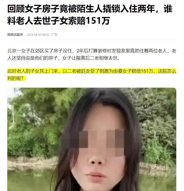 太奇葩了!广东惠州,一女子买了新房后去外地工作,回来时竟发现有一对老年夫妻住在里面。警方调查发现,他们是撬锁进去的,已经住了两年多,民警劝他们搬离,他们不肯。可随后不久他们不知为何搬走了。但在一年半后,女子却直接被入住家属起诉,要求赔偿其151万元! 想象一下,你辛辛苦苦攒钱买了房,结果一去外地打拼,回来发现陌生人住了两年多,还撬锁进去的。更离谱的是,他们走后家属反咬一口,起诉要赔巨款。这事发生在广东惠州,牵扯出一堆法律纠葛,让人忍不住想追下去,看看到底谁对谁错。 刘女士来自广东惠州一个普通家庭,早年生活条件一般。她从小就注重学习,学校成绩一直不错,毕业后直接进公司上班,一步步靠自己努力爬上来。刚工作那几年,她每天加班攒钱,生活节俭,就为了实现买房的梦想。2017年,她终于凑够首付,在惠州买下一套毛坯房,这套房对她来说是人生大事,代表着独立和稳定。 她选房时对比了好几个小区,看重位置和价格,办完手续后就锁门离开了,因为深圳那边有份薪水更高的职位等着她。她去深圳后,租了个小公寓,工作节奏快,早出晚归处理各种事务,基本没时间回惠州。两年里,她专注事业,收入慢慢涨起来,还额外存了点装修钱。她平时通过物业了解小区动态,但从没亲自回去检查。2019年,她觉得时机到了,决定回惠州装修房子。 刘女士买房前其实调研了市场,那年惠州房价正涨,她抓紧机会入手。买完房,她拍照留念,但很快就投入深圳工作。深圳那边公司要求高,她从基层做起,逐步升职。两年时间,她没请假回惠州,全部精力在事业上。存钱过程也很辛苦,她省吃俭用,避免不必要开支。回惠州那天,她满心期待装修,却撞上这事。警方调查显示,老人撬锁痕迹明显,她提供购房合同证明产权。老人离开后,她花时间清理,墙上烟渍难除,地板刮痕多。她更换锁具,确保安全。她的经历接地气,很多打工人都有类似担忧,房产空置风险大。她没被击倒,继续前进,这点值得学。 这件事从2017年开始,刘女士买房后锁门去深圳,两年没回去。2019年11月,她回来准备装修,发现一对老人住了进去。警方查明,老人两年前撬锁进入,住了两年多,没付任何费用。房子墙壁被烟熏黑,地面有损坏。老人拒绝搬离,警方劝说他们才走。刘女士报警后,民警现场调查,确认撬锁事实。老人叶姓男子和妻子声称房子空着,就住了。 民警解释这是非法行为,要求离开。老人拖延时间,但几天后离开。房子空置后,刘女士清理现场,更换锁头。整个过程暴露房产空置风险,老人行为明显违法。警方记录显示,老人无产权证明,直接撬锁。民警多次劝说,老人勉强同意。离开时,他们带走东西,留下脏乱。刘女士花钱修复损坏。这事在当地引起注意,提醒业主注意防范。老人没道歉,直接走人。过程就这样,简单但荒唐。很多人听到都觉得气愤,房产私有,怎么能随便住。 警方出警时检查门锁,痕迹新鲜。老人承认2017年5月进入,那时房子刚买没多久。刘女士提供购房凭证,民警核实无误。老人住期间用水用电,账单累积。民警劝说过程,叶姓男子坐着不动,妻子收拾物品。劝说后,他们同意离开,但动作慢。几天后,物业确认他们走了。刘女士回去查看,屋里烟味重。她用工具清理,花了半天。更换锁后,她通知物业加强巡查。这过程逻辑清楚,老人违法在先,刘女士维护权益。事后,她没追究老人责任,只求恢复原状。老人走后,不知去向,但家属后来出现。整个占据过程持续两年,刘女士在外不知情。她的损失包括清洁费和时间。很多人建议她安装智能锁,避免再发。过程到这,没啥复杂,就是典型案例。 再多说点,警方调查老人背景,他们是本地人,无固定住所。撬锁工具简单,门没大损。住里面,他们当自家用,邻居没注意。民警介入后,记录老人信息。劝说时,强调法律后果,老人才动。离开那天,物业帮忙监督。刘女士没参与驱赶,交给警方。清理时,发现电器用坏。她报修,花了小钱。过程提醒大家,房产需管理。老人行为自私,没考虑后果。刘女士处理理性。占据事实清楚,法院后来认可。过程就这样,真实记录。 老人离开后十几天,叶姓男子高血压并发症去世。2021年,他的家属起诉刘女士,要求赔151万元,称赶人导致病情。传票送到深圳,刘女士联系律师,反诉非法侵占。庭审中,双方提供证据。刘女士提交报警记录和购房合同,证明权益。家属提供医疗报告,但无直接因果。法官审查,认定老人违法在先,刘女士行为合法。判决驳回家属索赔,要求他们赔刘女士租金损失。刘女士胜诉,挽回部分经济。房屋装修完成,她继续深圳工作。家属败诉后,没再纠缠。结局公平,法律维护正义。刘女士生活正常,老人家属吃亏。整个案子提醒大家,别占便宜。 这个故事太奇葩,换你会怎么处理?欢迎留言分享看法,一起讨论房产维权那些事。
