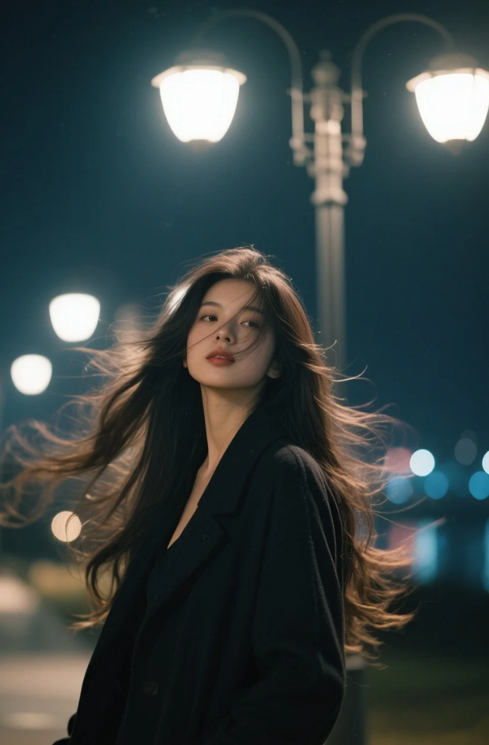 路灯亮起那一刻,她像从王家卫电影里走出来的女主