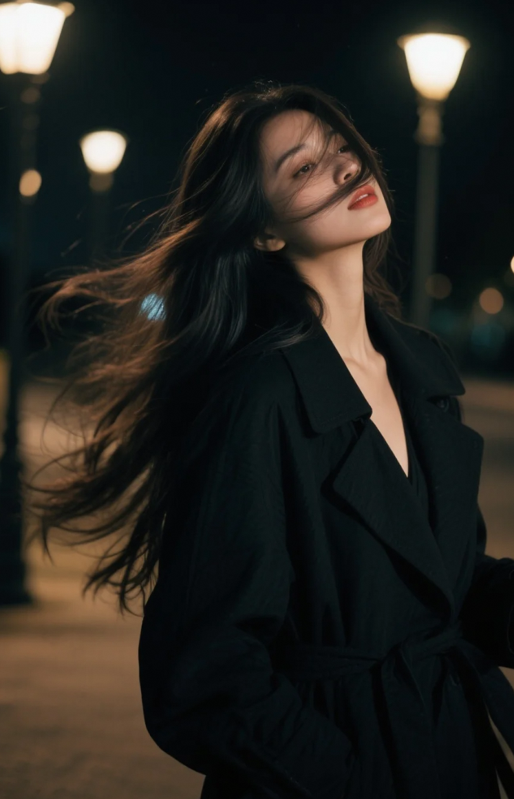 长发是风的形状,大衣是夜的颜色,她是光本身