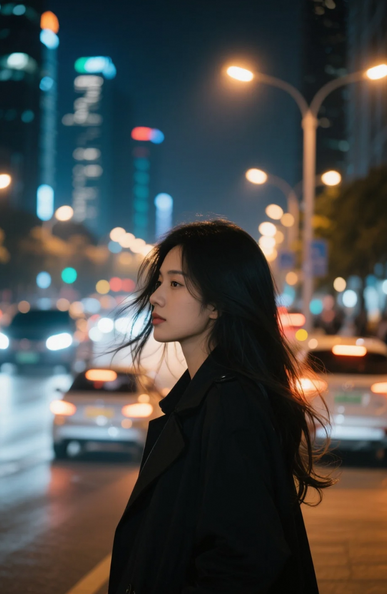 长发是风的形状,大衣是夜的颜色,她是光本身