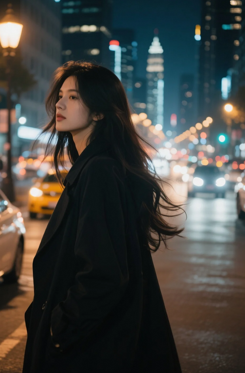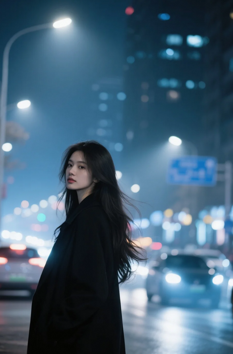 长发是风的形状,大衣是夜的颜色,她是光本身