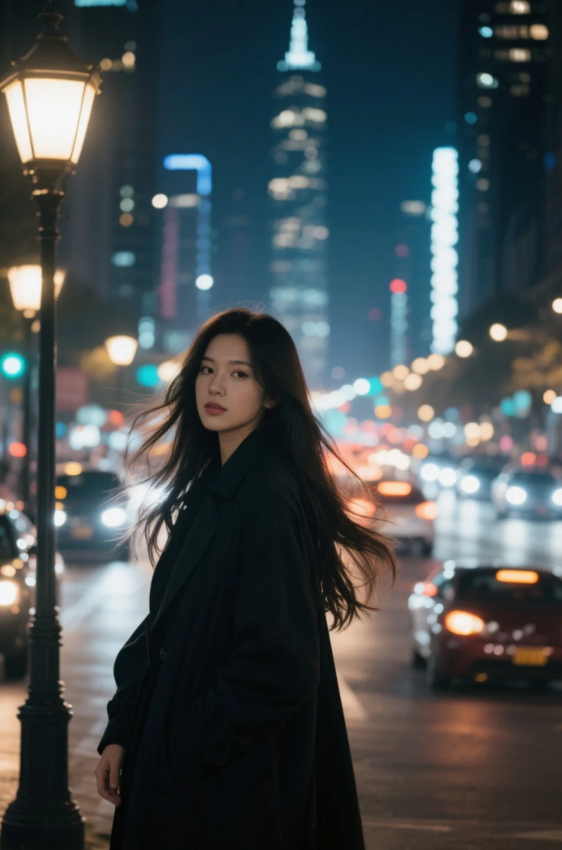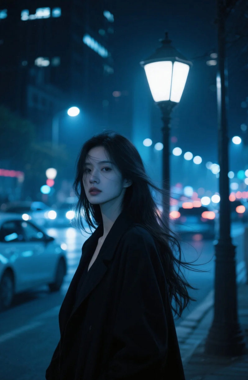 长发是风的形状,大衣是夜的颜色,她是光本身