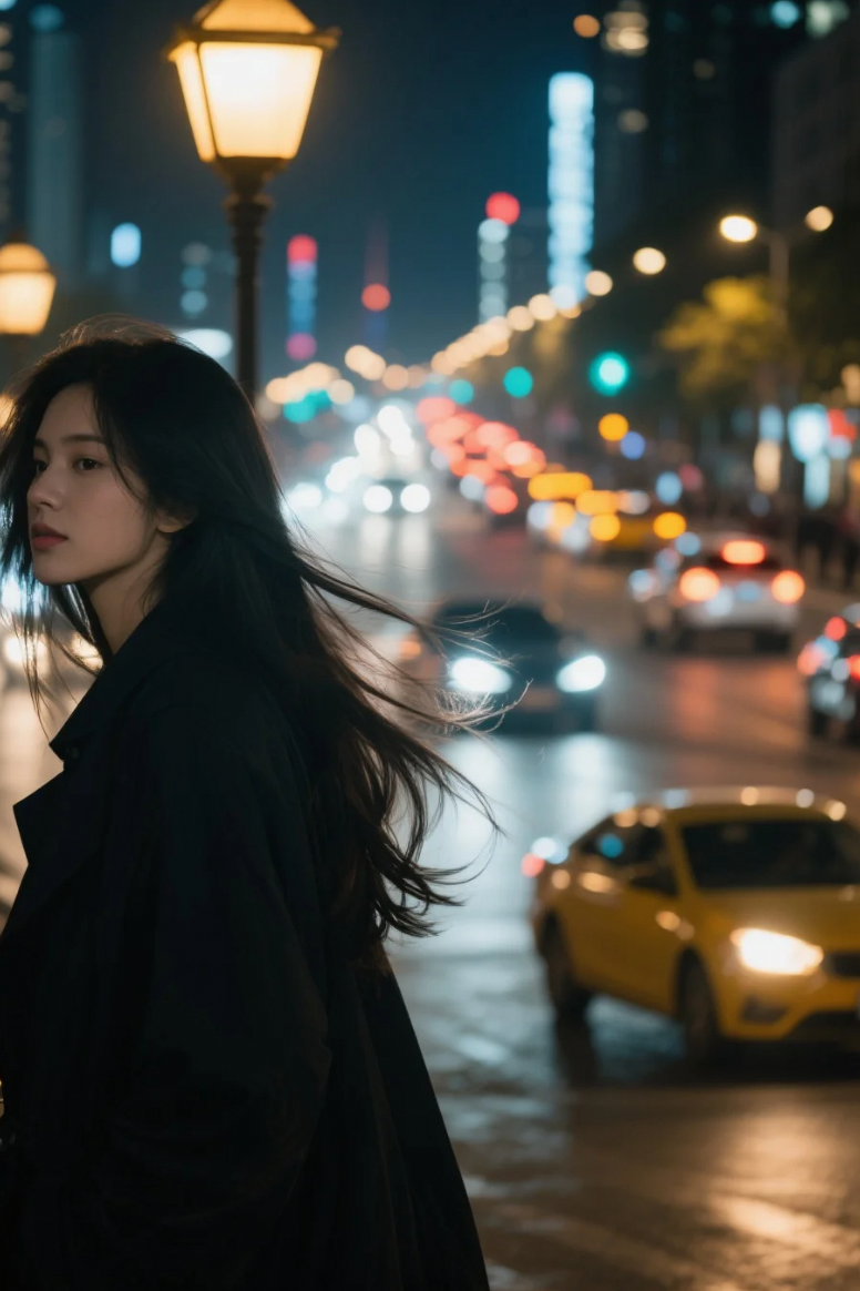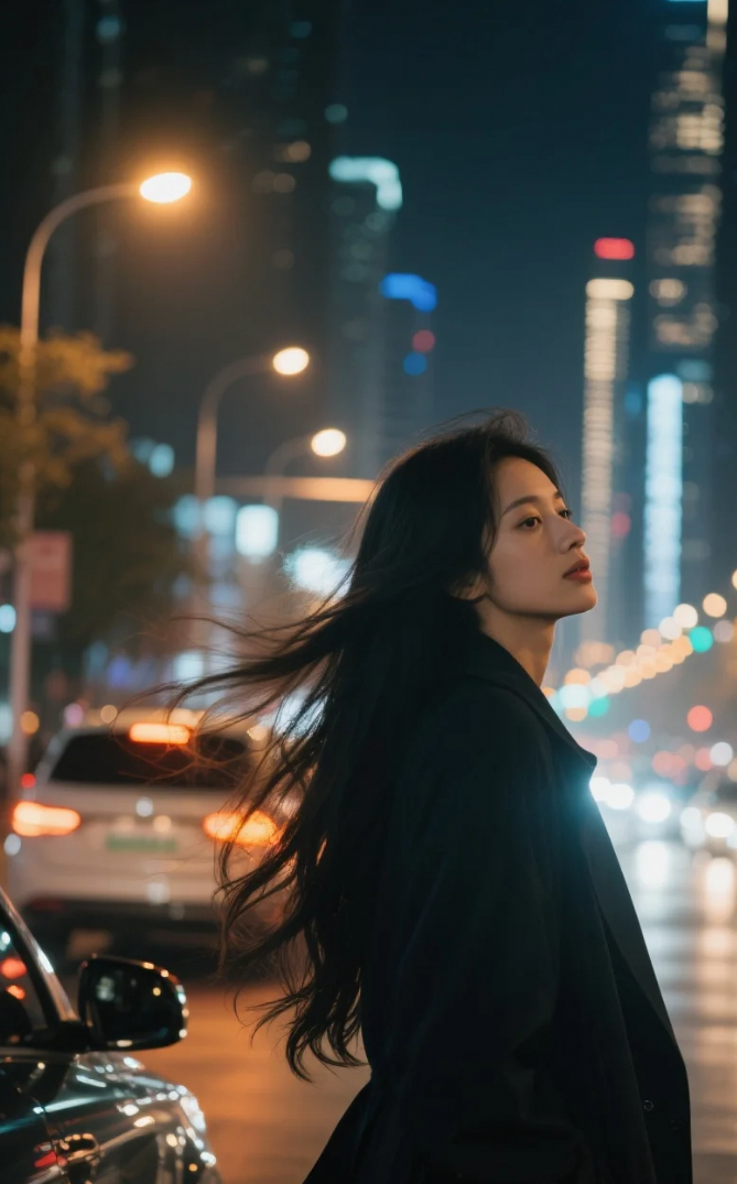 黑色长外套+长发飘飘,她是喧嚣都市里最安静的风景