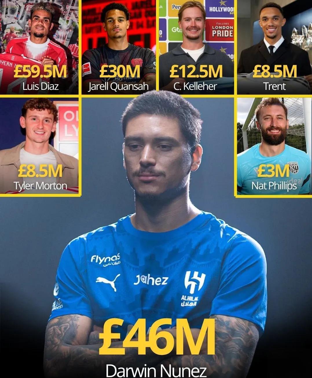 足坛短讯! ★金球奖30名候选人身价排行榜! 热门人选亚马尔2亿欧元排名第一,登贝莱9000万欧元排名第十五。 ★卖人有方! 利物浦这个夏天出售了7名球员,一共回收了1.65亿英镑。 ★曼联,你不后悔吗? 格林伍德在季前赛中为马赛打进了7个进球。 ★上赛季五大联赛创造机会次数排名! 榜首竟然不是豪门俱乐部的球员。 ★现役球员总进球排行榜! 姆巴佩现在排在第13名,不过他还年轻。 ★意甲32岁+老将最佳阵容! 挺好的,符合意甲气质。 ★参与进球花费转会费最多的球员! 安东尼以560万欧元每球,位列榜首,前十曼联、切尔西各占3席。