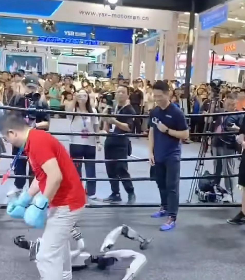 近日,红衣大叔周鸿祎大战小脑发育不全的宇树机器人。 只见周鸿祎上来就一个犯规动作,把机器人绊倒,裁判竟然没吹哨。[酷拽] 机器人很生气,站起来对着红衣大叔旁边的空气一顿输出(拳打脚踢)[捂脸]愣是给我看笑了。 还没完,只见红衣大叔一个后撤,把机器人逼入角落,一把推倒。 此次对战,红衣大叔完胜![抠鼻] 你觉得红衣大叔和马保国打一场,谁输谁赢?#头号创作者激励计划#
