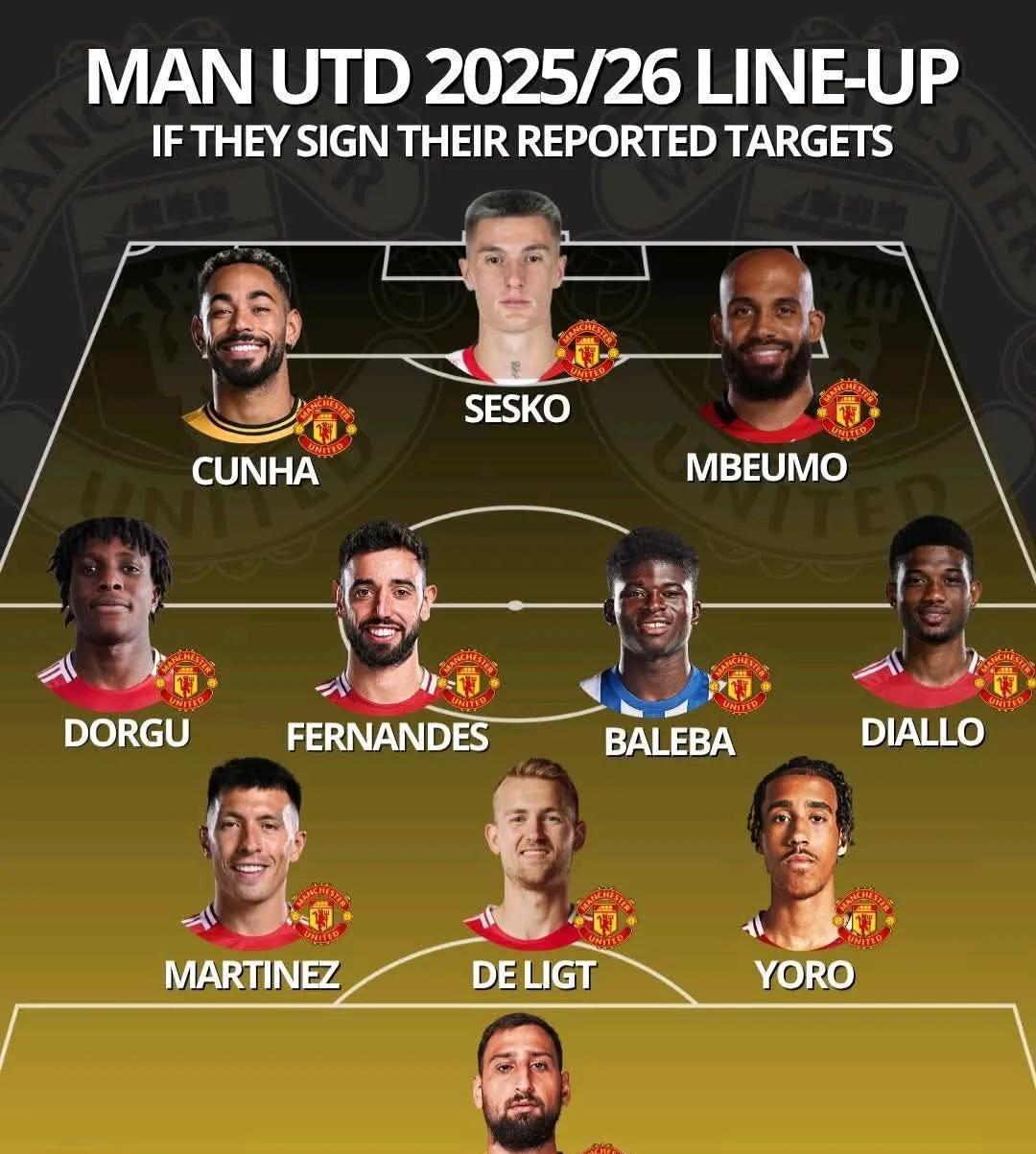 曼联这是铁了心要争冠啊!据悉他们计划本周以8500万镑固定+1500万镑浮动,总价1亿镑报价21岁的天才后腰巴莱巴,而且球员本人还愿加盟,这消息一出来,感觉曼联的梦幻首发都要出炉了。 这个夏天曼联收获颇丰,更新了三叉戟,现在又盯上巴莱巴。如今红魔中场一直是心病,而21岁的巴莱巴完美适配阿莫林4 - 3 - 3体系。他场均4.3次成功对抗,跑动距离居英超前三,身高一米九一,场均2.1次抢断。长传成功率87%冠绝英超,比德布劳内还高5个百分点。有他在,曼联中场的“硬度”和推进转换能力都能上一个台阶,争冠或许真不是梦!