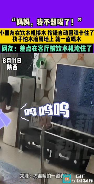 “哭笑不得!”陕西,小女孩在家里口渴了,拿了一个杯子在饮水机接水,谁知那饮水机的按钮却突然卡住了,小女孩怕水全都流到地上,便弯着腰一直喝水! 来源:【小莉帮忙】 “呜呜呜……”小女孩一个人在客厅里突然诚传出了哭声,妈妈听到后,赶紧从屋里出来查看情况。原本还以为是孩子磕了碰了的,谁知竟看到了让人忍俊不禁的一幕! 原来,小女孩在饮水机接水时,那本身就是自动回弹的按钮却不知怎的,突然卡住了! 只要小女孩将杯子拿走,那水就会哗哗的流到地上,为了避免这种情况,小女孩也是非常实诚,直接弯着腰,用嘴对着自己接水的杯子,一直蹲在那里喝水! 刚开始,小女孩就是口渴了才来接水喝的,可时间一分一秒过去,这水一直往外流,小女孩一直蹲着喝,她实在是喝不动了,一时又不知道怎么办,所以就急哭了! 好在妈妈听到哭声,立即出来,将她解救了出来! 小女孩被救后,整个人就像“刑满释放”一样,开口第一句话就是:“妈妈,我不想喝了!” 那声音又带着哭腔,却让人莫名的想笑! 事后,妈妈将这段视频发到网上后,引起了网友们的热议! 有网友说,这小女孩真的太实诚了,虽然脑袋不是最聪明的,但从她的举动可以看出,父母对她的教育是成功的,她的素质和品德肯定不会太差! 有网友说,你以为她是害怕哭了,其实她是真的喝撑了,没招了才哭的! 有网友说,我有次带孩子去游泳馆,结束后,孩子让我去买瓶水,我说你还没喝饱啊,孩子说喝饱了,但泳池的水不好喝,需要买瓶水漱口,我当时就笑了,但仔细想想,又好像有些道理! 其实,我们每个人不管做什么,都是从不会到会的,慢慢的都有一个过程! 就像这个小女孩,她也是第一次遇到这种情况,她一下没有反应过来,根本不知道怎么办,但她却尽自己最大的努力避免了“祸事”,所以,不管怎样,还是要为这个小女孩点赞!