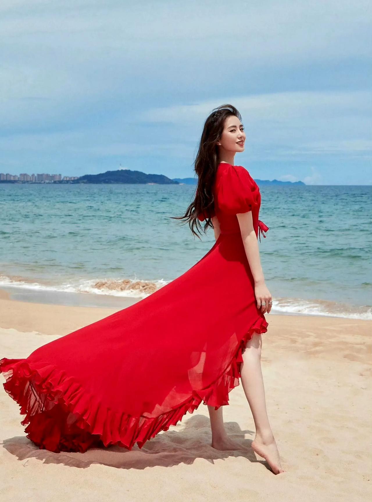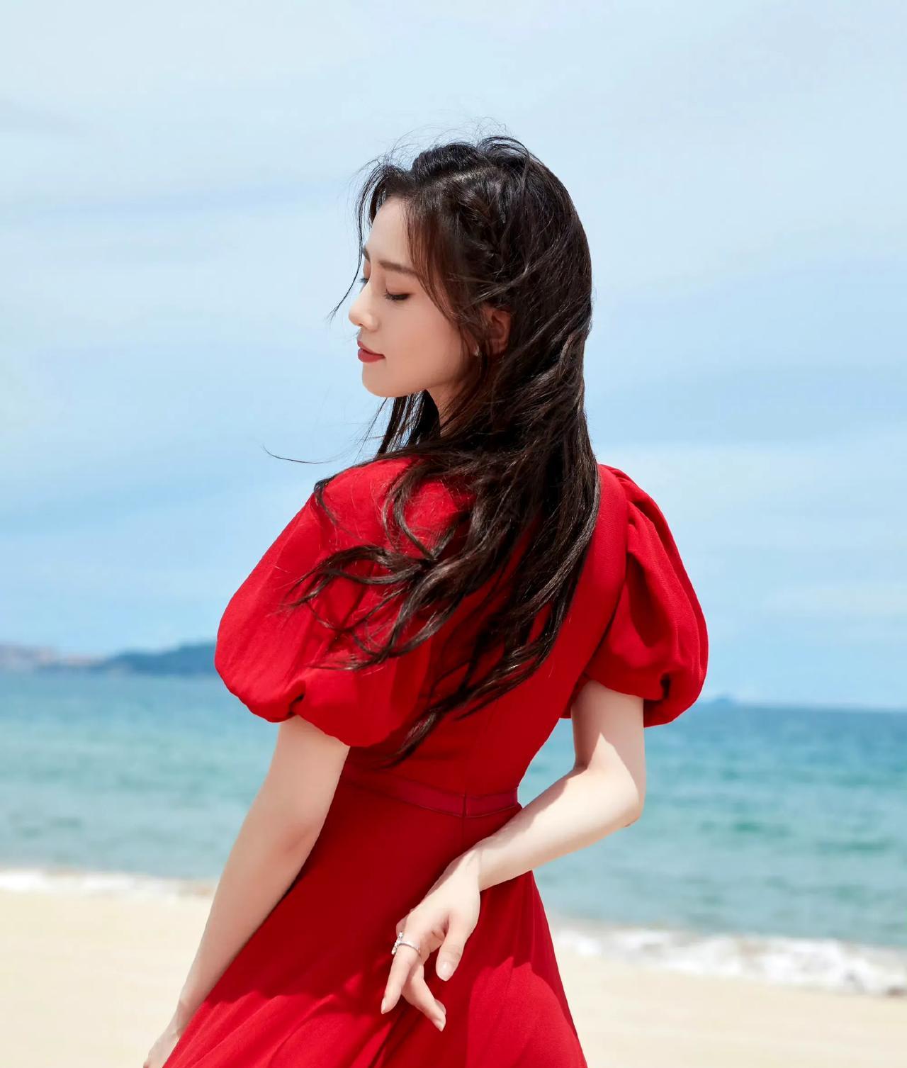 #刘诗诗#红裙裁取焰色,在海风里漾成潮汐的韵脚。珠宝轻诉精致,发丝驮着浪声——她站成海岸线上,明艳与温柔共生的风景。