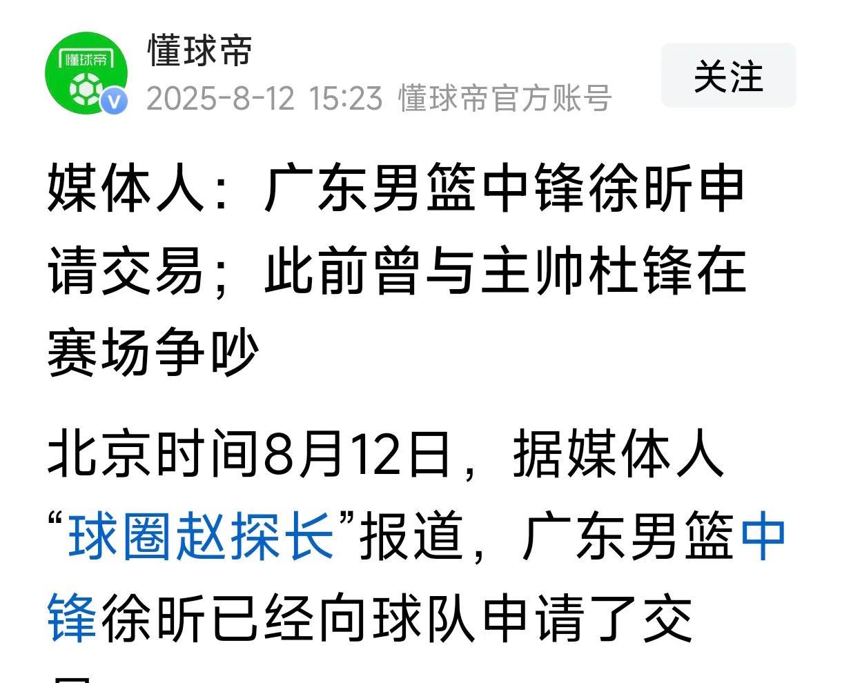 知名博主:徐昕已申请交易,广东宏远正在评估可能性 北京时间今日下午,CBA传来重
