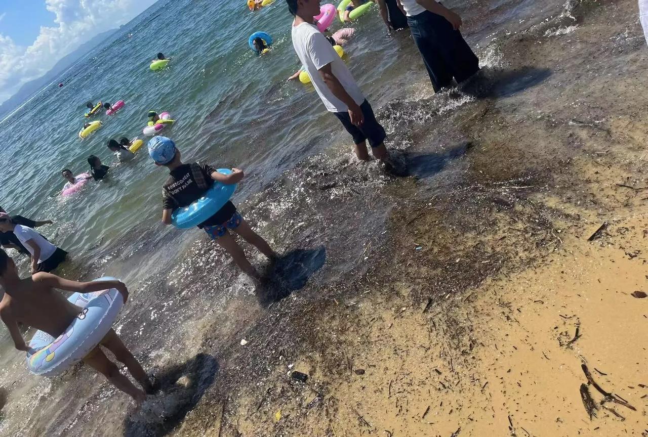 你们没有看错,这是深圳的大梅沙,不是印度的恒河,看你们谁还敢嘲笑阿三哥。 昨天带儿子去大梅沙玩一下,本来想下海游泳的,这么脏,不敢下去游泳了,早知道就不来了,浪费了我的时间,还不如去别的地方玩。 大梅沙每年我都去好几次,但从来没见过这么脏的,好多木枝啊,垃圾啊,沙滩上面漆黑的一片,但是也阻挡不了还是有那么多人下去游泳。 反正我们是不敢下去游了,那些黑黑的也不知道是什么东西,就怕染上皮肤病就麻烦了。