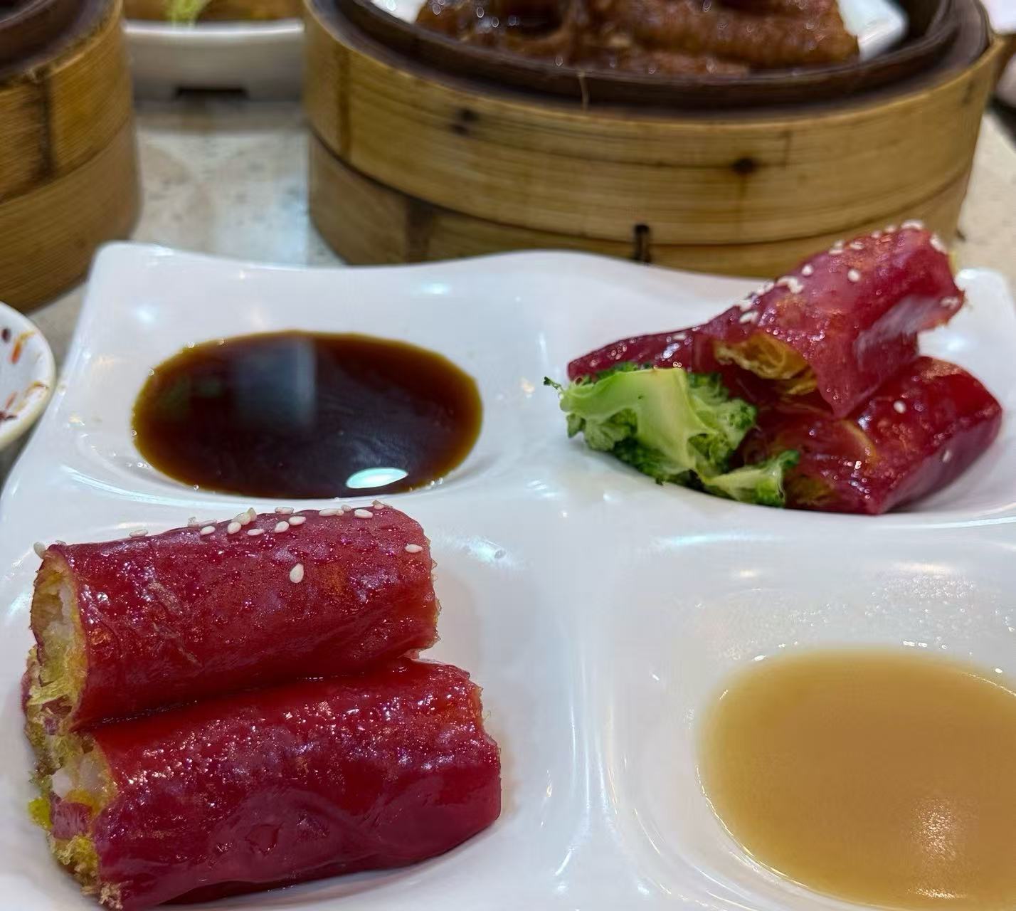 2️⃣.红米肠,颜值点心,红色的皮包着酥脆的油条和鲜美的虾仁,很好吃。