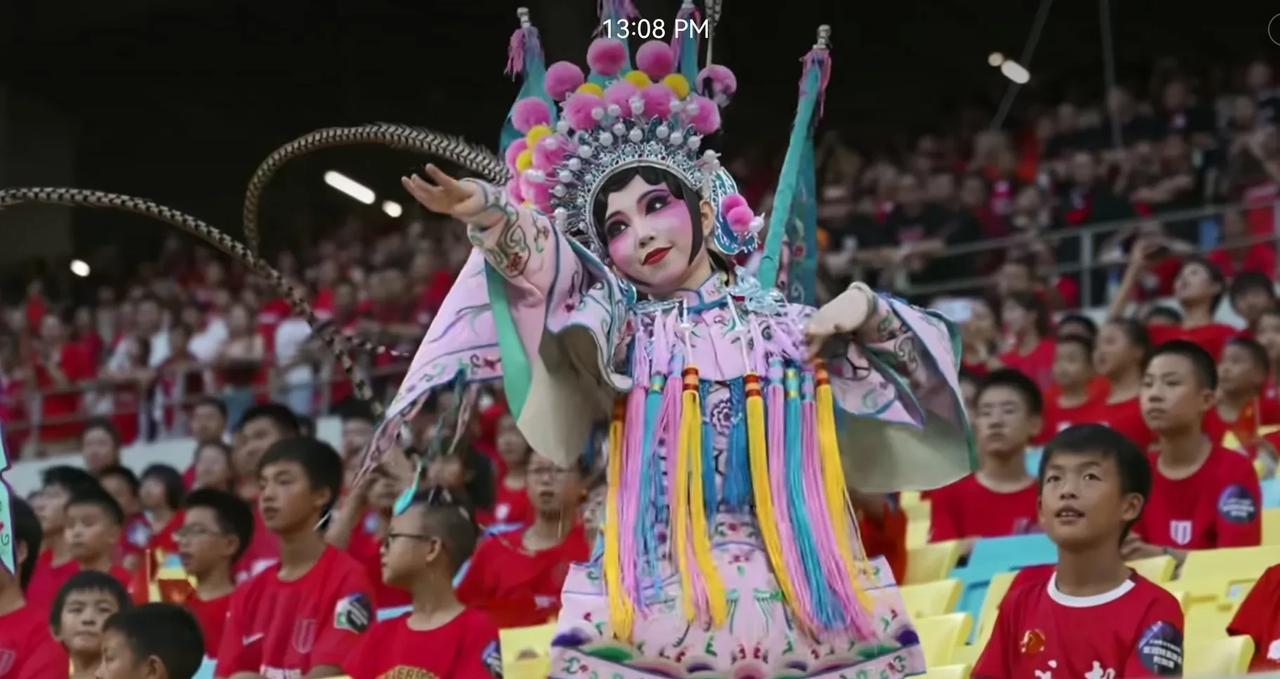 太火爆了,又看球赛又看变脸、舞狮,成都蓉城在8月12日亚冠比赛前进行了川剧变脸等