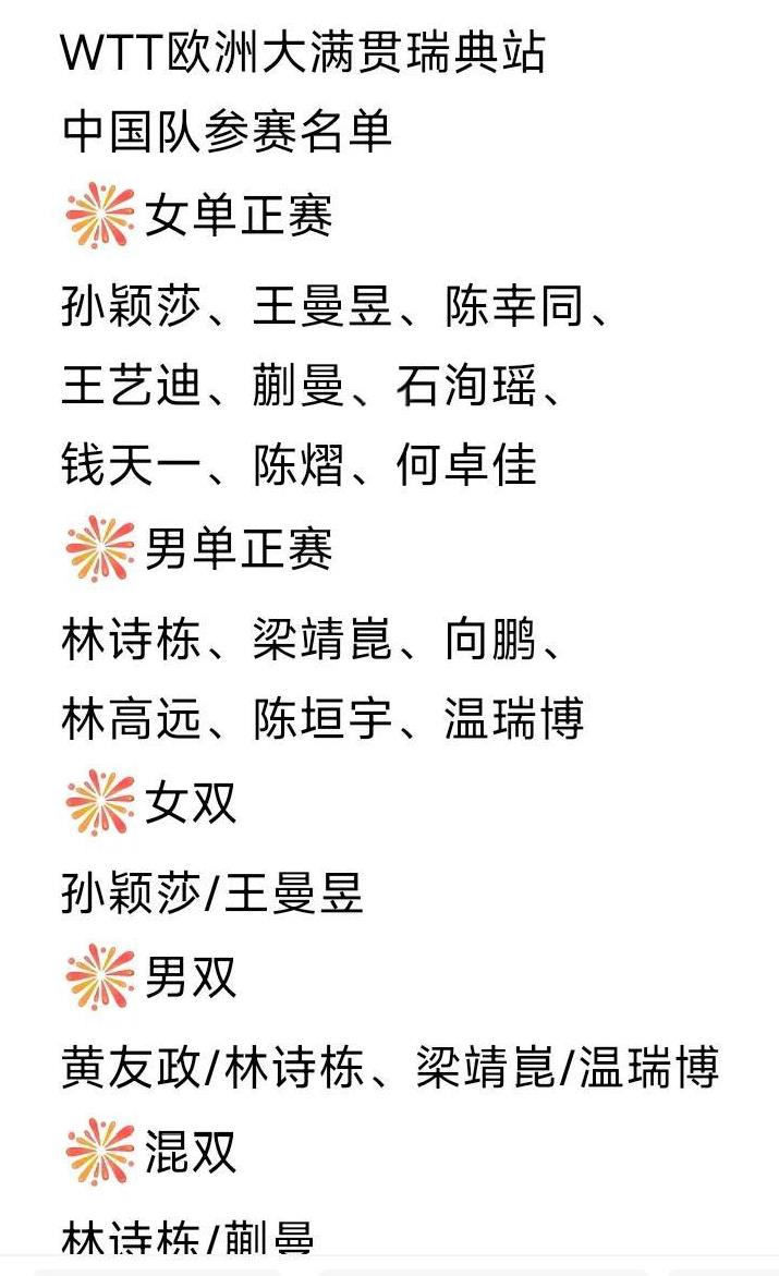 8月15日晚上八点抽签仪式! 这个晚上八点是北京时间,我们和瑞典的时差大概是六小时,又该熬夜看比赛了。 国乒9女6男共15名选手参加单打比赛,另还组成四对儿组合参加双打比赛。