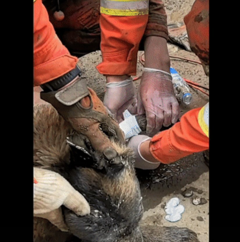 "幸运的毛孩子" 甘肃榆中,一只大狗被埋淤泥里30多小时。被发现时,小狗双眼无神已然很虚弱,几个消防员上前徒手搬开石头和树枝。将它从淤泥里抱了出来。