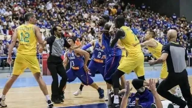 冤家路窄,澳大利亚苦等七年终于迎来一个复仇的好机会! 在菲律宾淘汰东道主沙特男篮后,他们的开心并未持续多久,不仅因为他们要面对的是亚洲排名第一的澳大利亚,还因为两队的恩怨注定这场比赛菲律宾男篮不会有好果子吃! 2018年世界杯亚洲预选赛,菲律宾坐镇主场迎战澳大利亚,面对强大的澳大利亚男篮菲律宾毫无还手之力,上半场结束就大比分落后,输急眼的菲律宾男篮下半场小动作不动,最终双方爆发激烈的冲突,菲律宾男篮全体球员围殴澳大利亚在场上的5名球员。这场冲突导致双方共13名球员被驱逐,(菲律宾9名,澳大利亚4名)菲律宾因球员不能满足比赛要求被判负。 虽然那场比赛澳大利亚赢球了,但被围殴的耻辱深入球员内心。时隔7年双方再度遭遇,没有主场优势加持的菲律宾男篮将会遭到澳大利亚的疯狂针对,一场大比分输球是避免不了的!