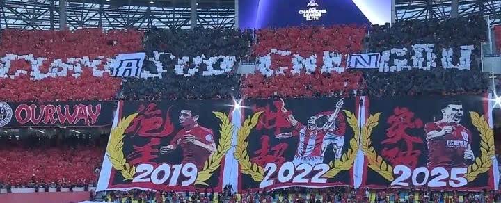 中超威斯特法伦!成都凤凰山惊现三星堆面具tifo,完爆工体八臂哪吒城和上海德比的申花编织袋。 亚冠资格赛,成都凤凰山体育场全场看台都出现了巨型tifo。广汉三星堆的面具人tifo代表着四川悠久的历史文化,上面写着:你好亚洲,我们来了。 主看台的tifo组成了成都蓉城的队徽,北看台的tifo是三张照片,记录了成都蓉城2019年冲甲、2021年冲超、2025年征战亚冠的三个里程碑瞬间。 成都蓉城的tifo,有历史、有故事、有回忆、有难度,堪称亚冠历史最佳tifo。
