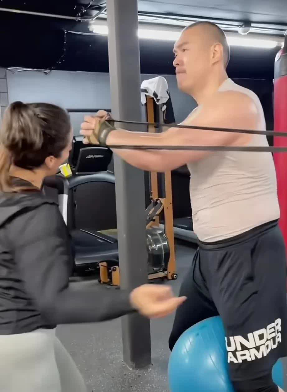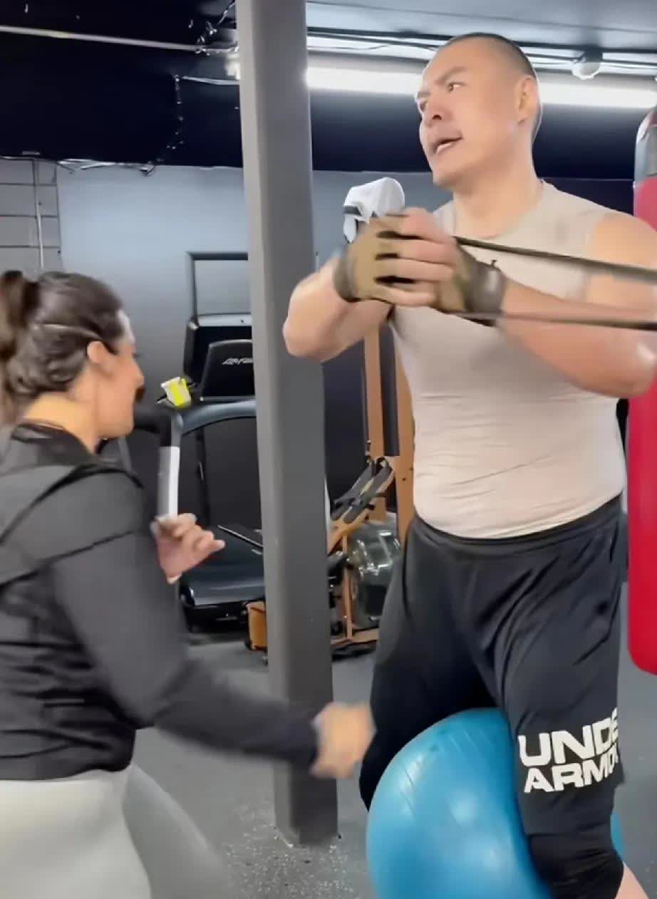 “大爆炸”张志磊的团队在跟他做腹部抗击打恢复训练。张志磊在和卡巴耶尔大战之后确实