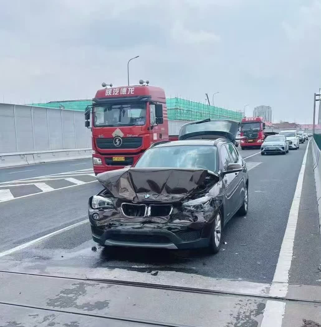 好家伙,这波追尾无形中给尚界H5宣传了一波,宝马撞上了尚界路测车,从图里面可以看到尚界H5没多大问题,无非就是后杠受损,反观宝马前脸撞的那叫一个严重,尚界H5硬不硬[我想静静]