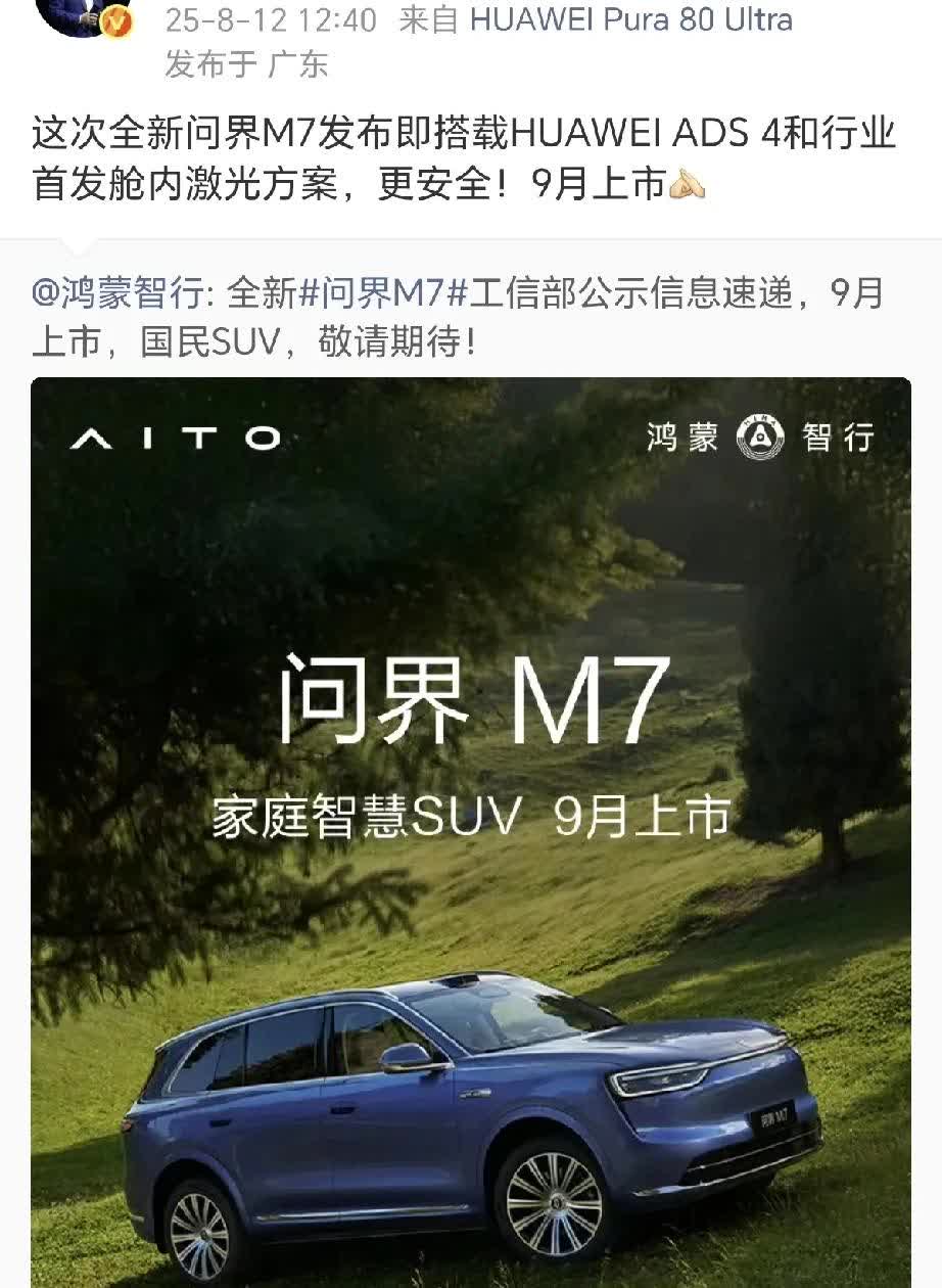 韩路:熊猫眼家族脸! 余承东:你说错了, 韩路:不是熊猫眼是什么? 余承东:家族鲲鹏设计语言, 韩路发文说鸿蒙新风格的熊猫眼家族脸,我觉得比老款好看太多,在M8上很成功,我很喜欢。期待熊猫眼M7。 我怀疑余总是看到了韩路的这个发文, 今天余总再次强调说是:家族鲲鹏设计语言,星环双翼大灯突显科技活力, 余承东发文还说这次全新问界M7发布即搭载HUAWEI ADS 4和行业首发舱内激光方案,更安全! 很多网友都不知道什么是舱内激光方案,余总也不给大家解答一下,有懂行的吗?来说说吧!