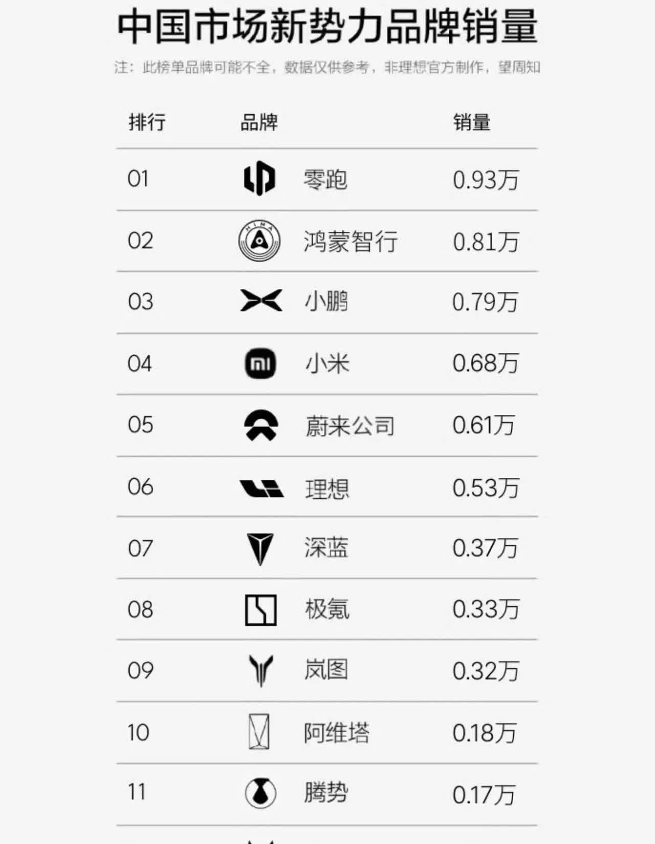上周新能源车销量榜单出炉,2025年第33周(8.4-8.10),总体销量都有所萎缩。 1,比亚迪5.48万, 2,零跑0.92万辆拿到新势力第一, 3,小鹏0.79万辆第二, 4,银河0.76万辆第三, 5,问界0.7万辆, 6,小米0.68万辆 , 7,理想0.53万辆。 总体萎靡的背景下,小鹏让人眼前一亮,零跑很稳。