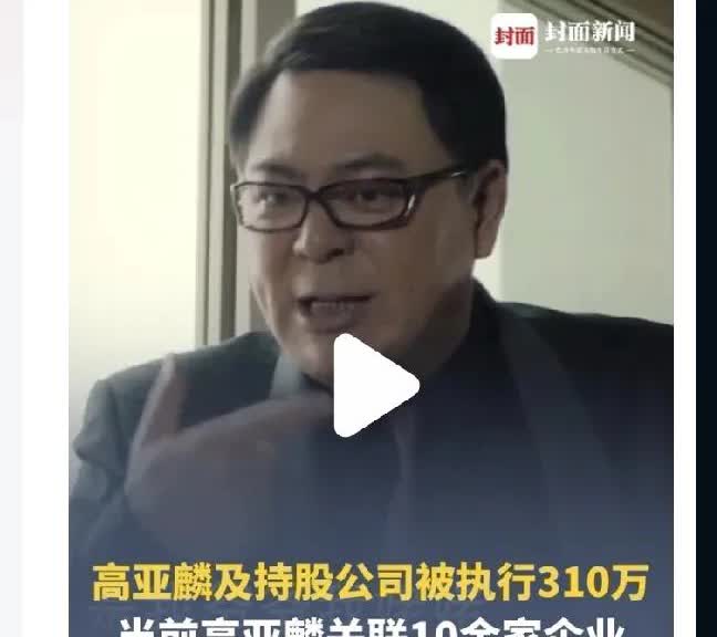 ‘演艺圈’开始撕‘画皮’了! 看似‘忠厚老实’的高亚麟! ‘中枪’了! 被法院执行310万,冻结788万! 名下多家公司受影响! 自司马南‘中枪’后,‘上边’动真格!好消息源源不断的扑面而来! ‘小燕子’飞不动了! ‘范闲’的亲王老子也都中枪! 《家有儿女》之父,也身陷囹圄麻烦。 下一位高人,又是谁呢? 期待……
