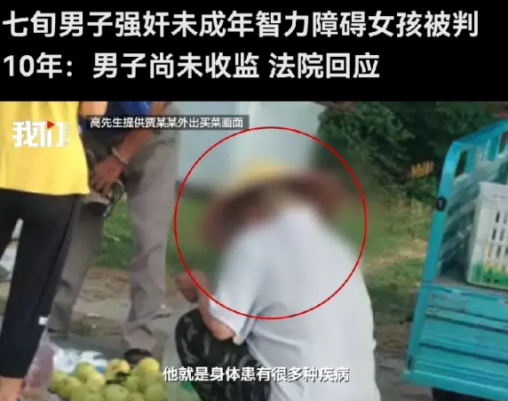 七旬男子强奸智力障碍女孩被判10年:男子尚未收监,法院回应。