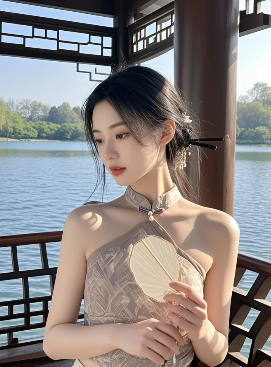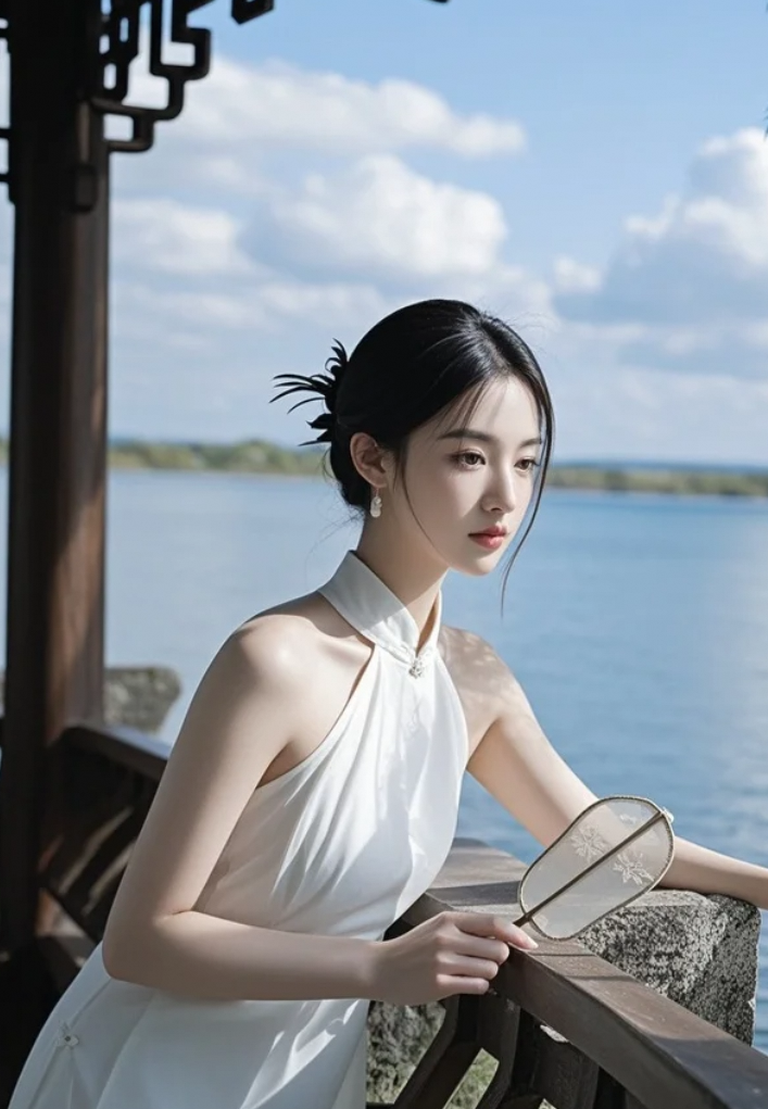 她站在湖边,像在等一句“我来了”