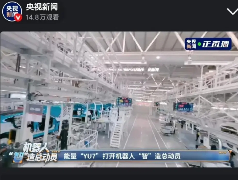 今天央视又带大家深度探访了小米汽车工厂,这已经是今年第N次上央视了,妥妥的国家队背书!整个工厂几乎看不到工人,700多台机器人协同作业,从9100吨大压铸到全自动装配线,每76秒就能下线一台车,效率直接拉满。SU7和YU7能成爆款,背后全是这套智能制造的硬核支撑。
