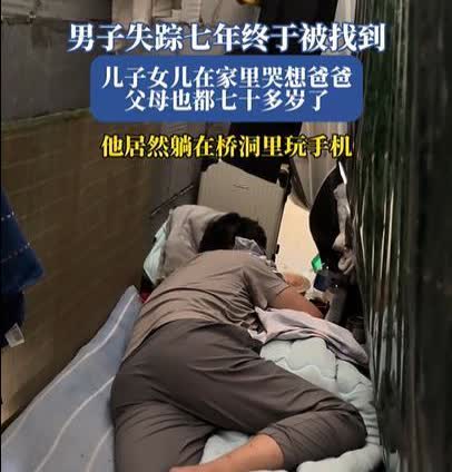 这种男人还有老婆?江苏,男子失踪7年终于被找到,儿子女儿在家里哭想爸爸,父母也都70多岁了,他居然躺在桥洞里玩手机!家人恨铁不成钢的怒骂:你好意思,你有小孩,儿子在家里哭知不知道?你老爸老妈70多岁了,你还有理了是不是?你知道你父母对你有多失望,找了你7年!你老了会很惨!你知不知道? 你猜怎么着?这哥们儿在桥洞里头过得还挺滋润,手机不离手,被子衣服叠得整整齐齐,小日子讲究得很。家人一见他,火冒三丈:“你还有脸呢?孩子有多想你,你心里没点数?老爸老妈找了你七年,你倒好,还觉得自己挺有理?将来有你受的!” 这哥们儿,不是没本事,网费能交,生活能自理,就是不想回家。这不是走投无路,纯粹是故意的逃避。他不是干不了活,就是不想担那份责任。 家人找到他时,那情绪,直接炸裂。老爸老妈都老成啥样了,还在外头奔波;儿女呢,天天哭,就盼着老爸回来。他呢,桥洞里头躺得舒服,被子叠得好好的,墙上还贴着草席,过得那叫一个自在。这不是没办法,这是他自个儿选的路。他选了逃避,选了自私,选了让家人痛苦七年。吃瓜群众都在那儿吐槽:“四肢健全能搬砖,却把家人晾一边,这哥们儿还算个啥汉子?”他不是没辙,纯粹是不想扛生活的重担。他挑了个最省力的活儿——溜之大吉。结果呢,家里人哭得稀里哗啦。 逃是逃得一时爽,可回头一看,一辈子都悔青了肠子。真心希望他早点醒悟,家不是累赘,那是担当啊。有的事儿,一旦错过,那就是一辈子的遗憾。