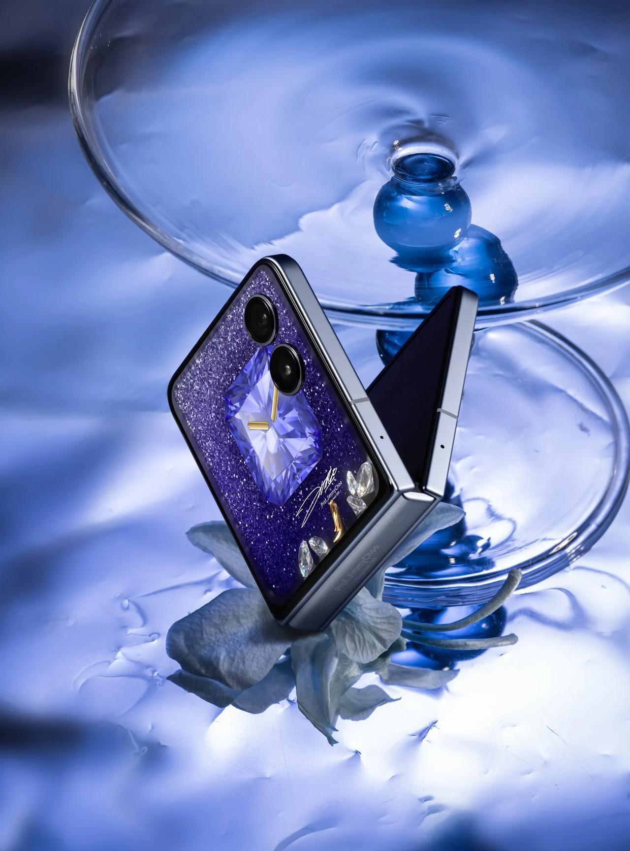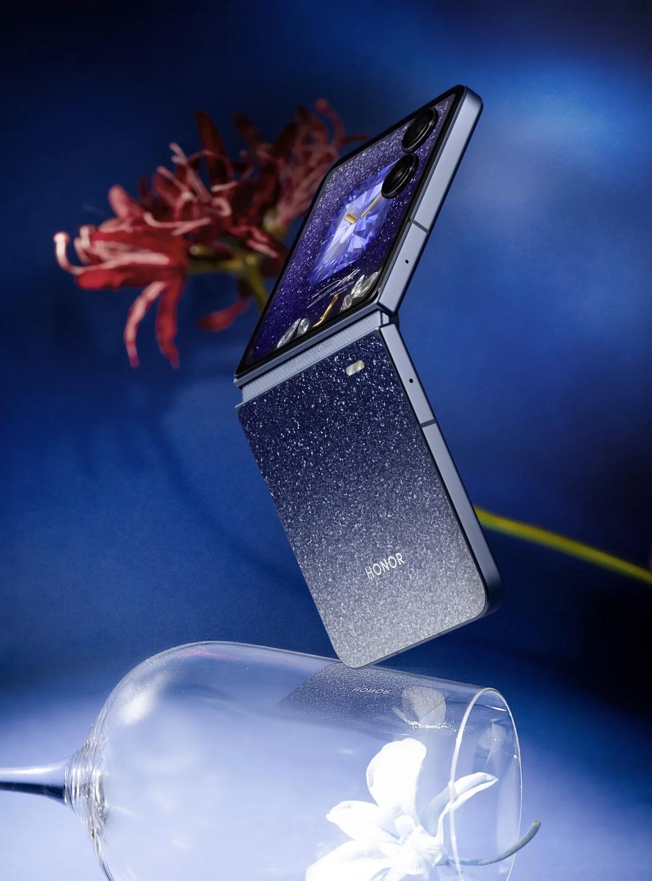 荣耀太争气了,这设计美绝了 看到荣耀Magic V Flip2的亮相图,真的被惊艳到了。携手国际时尚大师周仰杰博士所设计的外观漂亮极了,以水晶微光为灵感,将揉碎的星辰遍撒蓝色深海,再加上荣耀折叠家族独有的巴黎钉纹装饰,高定之作绝对的稳了。时尚和科技的完美结合,闪耀时刻这不就来了么?