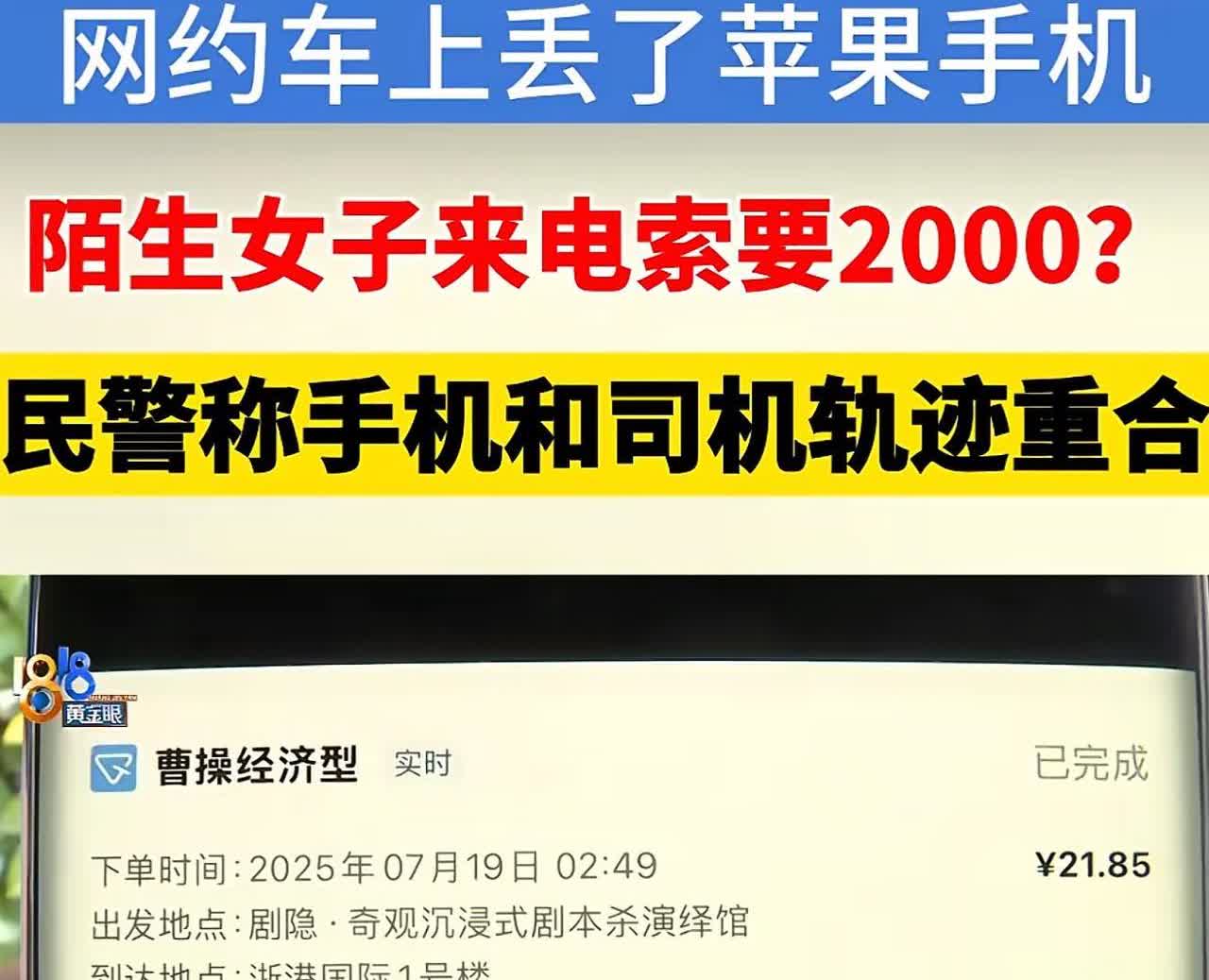 浙江杭州,女子丢了一部苹果手机,她怀疑落在了网约车上,网约司机却矢否认。随后,女子给自己手机打电话,对方接听了,向女子要2000元钱,才肯归还手机。女子一气之下报了警,民警发现网约轨迹和手机轨迹重合。 在杭州,小贾不小心把苹果手机弄丢了,这事儿还扯上了网约车司机、一个不认识的女人,还有警察。小贾觉得手机可能是落在网约车上了,结果却碰到了一连串让人恼火的事儿,都是想从她这儿捞好处的。 7月19号半夜,小贾打了辆曹操出行的车回家,下车没多久就发现手机没了。她赶紧用自己别的电话打过去,开始还能通,就是没人接,再打就关机了。她问了司机,司机说车上没手机。没办法,小贾只好报警。 后来手机定位又能查到了,显示的路线跟网约车跑的差不多。小贾发现手机位置老在动,估摸着还在车上。第二天早上,手机居然通了,接电话的是个女的,说这手机是她朋友捡到的,要小贾给地址送过去。小贾说愿意给点钱表示感谢,结果那女的张口就要2000块,才肯还手机。小贾一气之下报了警。警察叔叔打电话给对方,直截了当地说要还手机,还提议去警察局当面给。可对方非常强硬,还吓唬人说要把手机扔掉或者卖掉。之后,手机定位就没了,再也找不到线索。 警察叔叔查了查,发现手机的移动位置和那个司机叔叔的行程对上了,他们猜测可能是司机旁边的女人干的,但没找到铁证。网约车公司那边也帮了忙,把司机给封了,还给了警察叔叔录音啊、行程记录这些材料。录音里司机是说了有乘客手机丢了,可他就是不承认自己拿了。 到现在手机还没找回来,警察叔叔因为证据不够也没立案。小贾打算自己去法院告他们,说他们拿了手机不还,还想敲诈。