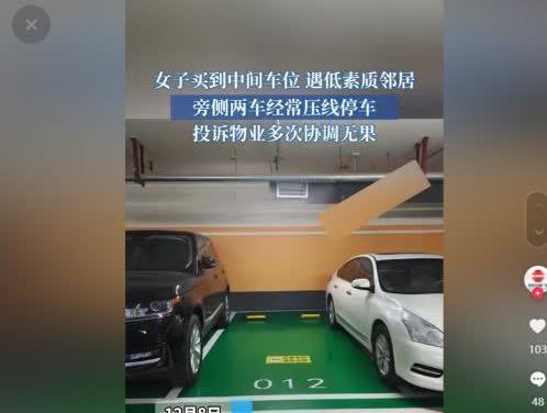 2024年河南,一女子买下中间停车位,没曾想车根本放不进去,两边车主停车频繁压线。无奈之下,只好找物业,却以属于业主之间为由无法处理拒绝从中协商。不料,当女子尝试和两位车主沟通,得到的竟是:“你这种情况就应该住大别墅,你想怎么停就怎么停,横着停都没人管。” 2024年12月,河南郑州有个小区,王女士掏了十几万块钱买了一个地下车库中间的车位。可没想到的是,两边的车主老是不规矩停车,把车线都压了,害得王女士没法正常使用自己的车位。 王女士的车位在中间,按说停车挺方便的,可实际情况却让她哭笑不得。左边那辆黑色SUV老是超出线外停着,右边那辆白色小车更过分,大半个车身都占到了她的车位上。王女士试着跟他们说了好几次,可人家根本就不搭理她,还嘲笑她。物业呢,也说这是业主之间的纠纷,不愿意帮忙调解。王女士没办法,只能打电话让车主挪车,结果人家不但不配合,还讽刺她说:“你要是有钱住大别墅,想怎么停就怎么停,横着停都没人管你。”这话听得王女士心里拔凉拔凉的。她开始纳闷,自己花钱买的车位,怎么用起来这么难呢? 好在王女士没有放弃,一直反映这个问题。后来物业终于出面调解了,两边车主也答应好好停车了,物业也表示要加强管理。这下,王女士的车位总算能安安稳稳地停车了。