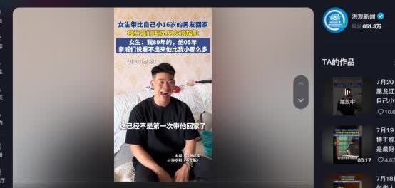 尴尬了!黑龙江,女子带着比自己小16岁的男友回家,不料,男友到家后就被赶来的亲朋好友团团围观起来,男友坐在沙发上表现的十分难为情,网友:男的正好,女的正好,过好当下! 7月20号,黑龙江有个80后的姑娘,在社交平台上发了个视频,说的是她小16岁的05后男朋友第一次来家里见亲戚的事儿。这一下,家里可热闹了,亲戚们都跑来围观,沙发上坐着的小伙子看起来有点紧张。大家一边说话一边偷偷瞅这小伙子,气氛既热乎又有点别扭。 原来啊,这小伙子是2005年生的,今年才19岁,而姑娘呢,是1989年的,比他大了整整16岁。不过两人站一块儿,看着还挺登对,小伙子高高大大的,挺阳光,姑娘呢,也很有活力,根本看不出有这么大的年龄差。 姑娘说,他们俩已经谈了四个月恋爱了,感情挺好的,这次是小伙子自己提出要见见家人。看他们平时一起骑车、旅行、做饭,过得挺甜蜜的。小伙子提着菜进门的样子,也能看出他是个挺有心挺负责任的人。 网上啥声音都有,有祝福的,也有说闲话的,但姑娘的家人并没因为年龄差距就给两人脸色看。就像有网友说的:“两个人都挺好的,好好过日子就行。”希望他们能好好珍惜彼此,大胆地爱下去。