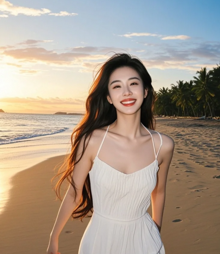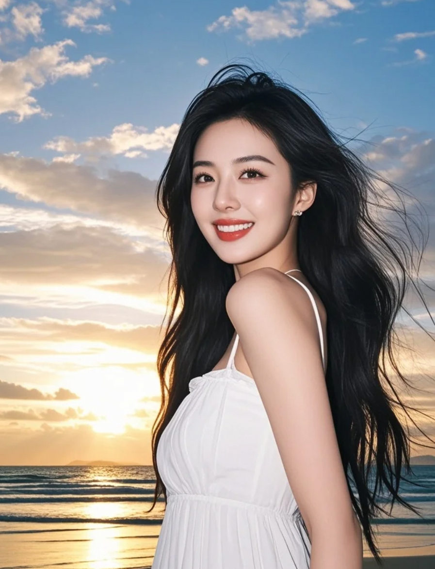 海风吻长发,裙摆轻扬,她是海边最动人的风景