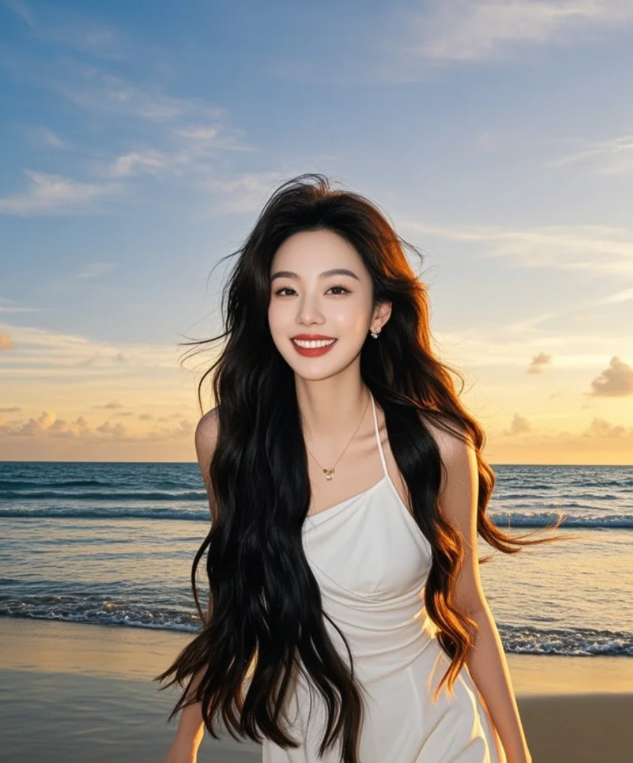 长发与海风共舞,美得让人屏息