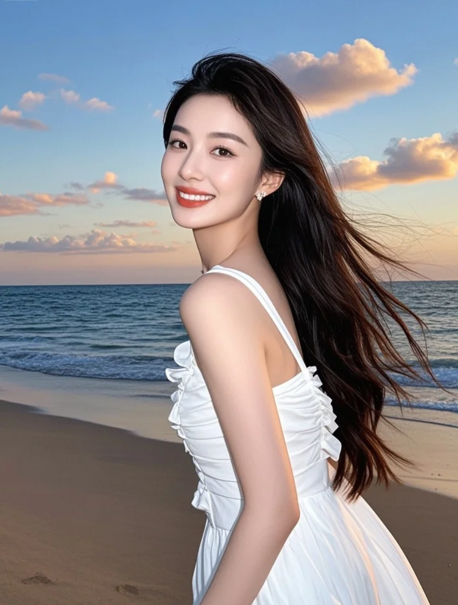 白裙在晚风中轻扬,撩动心弦