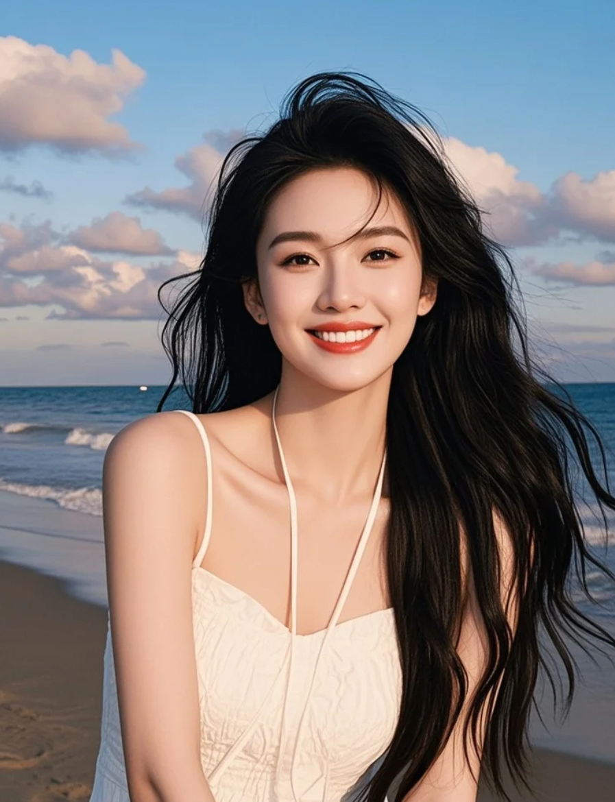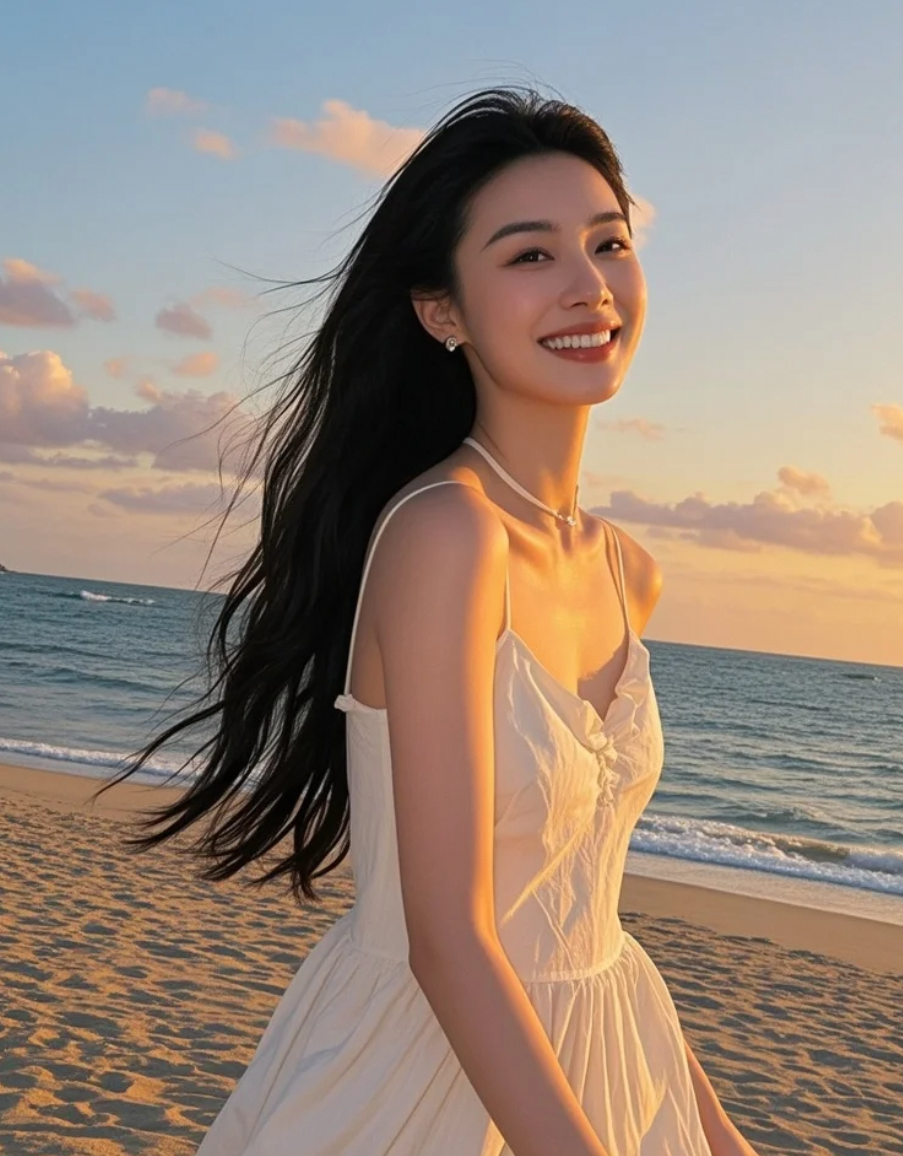 海风吻长发,裙摆轻扬,她是海边最动人的风景