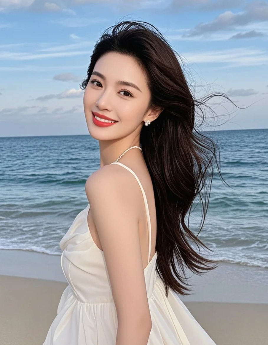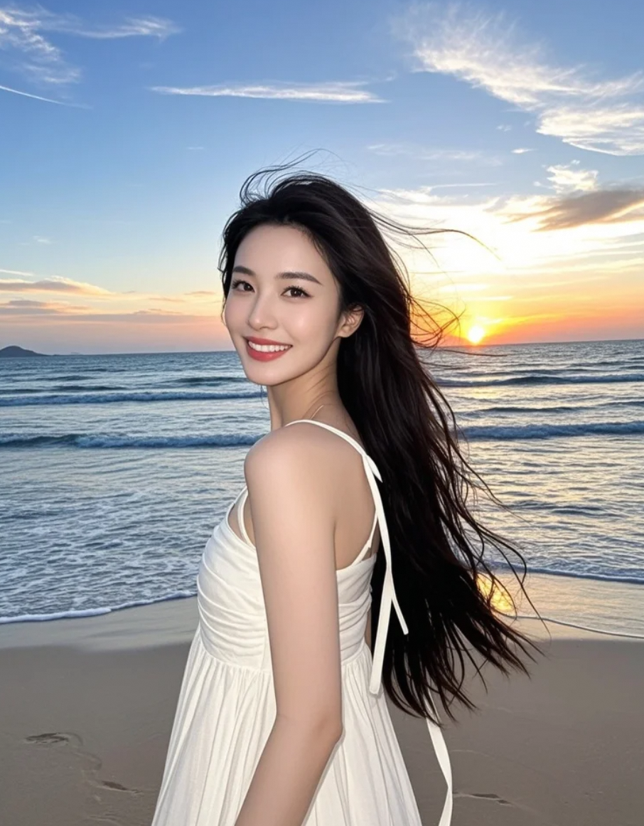 海风吻长发,裙摆轻扬,她是海边最动人的风景