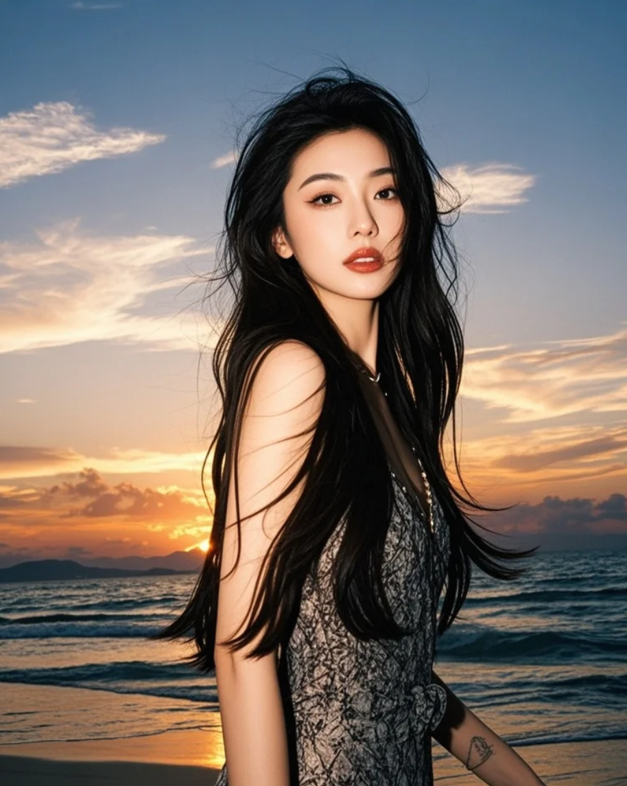 海风吻长发,裙摆轻扬,她是海边最动人的风景