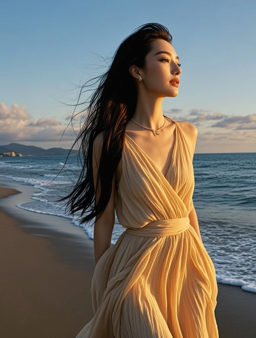 海风吻长发,裙摆轻扬,她是海边最动人的风景