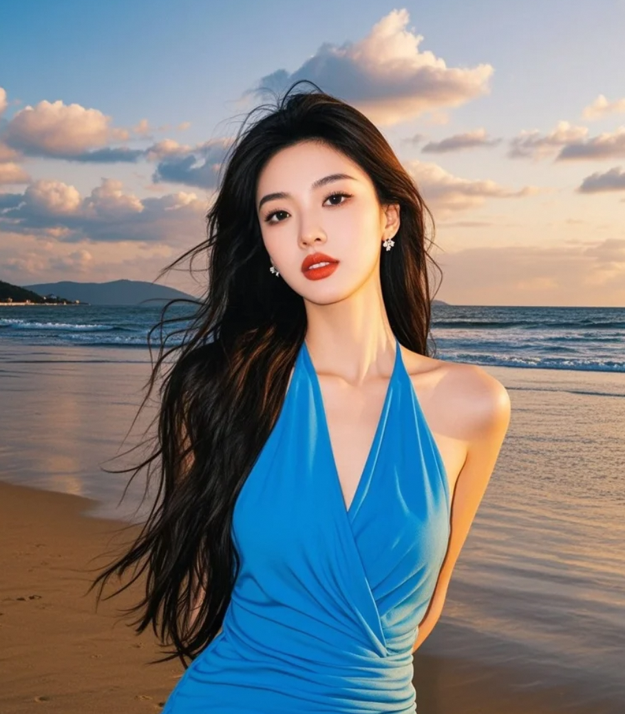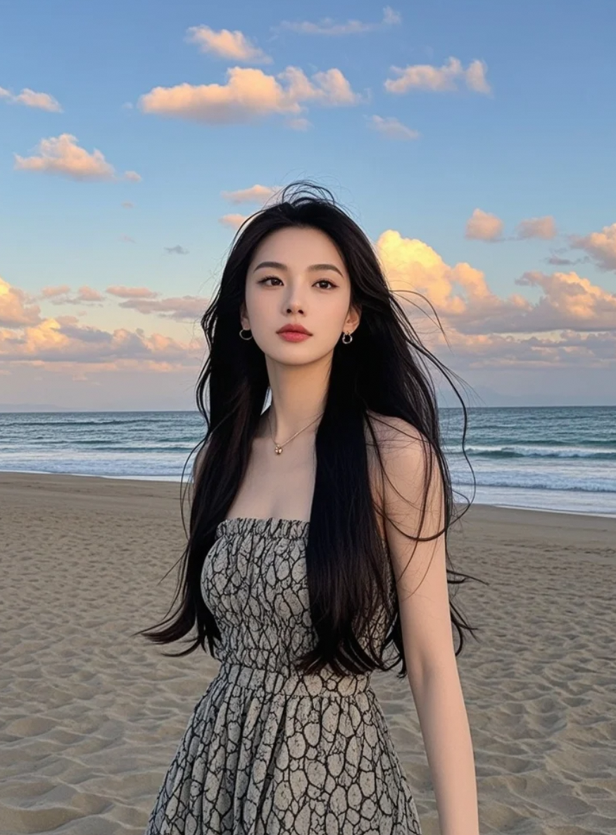 海风吻长发,裙摆轻扬,她是海边最动人的风景