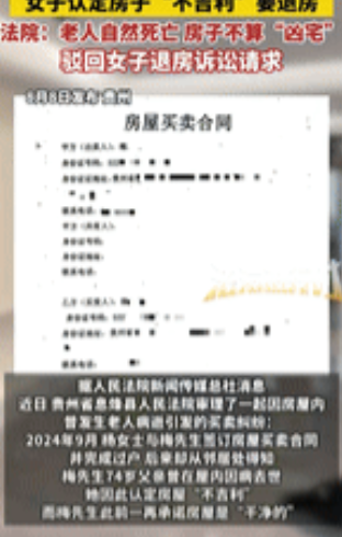 杨女士主观认为,只要是屋里死过人,那这房子就是“不干净”。可是法律是严谨的,能被称为“凶宅”通常是非自然死亡的情况,比如被他人杀害,或者自杀。而梅先生父亲因病去世,生老病死是自然规律,属于正常死亡。